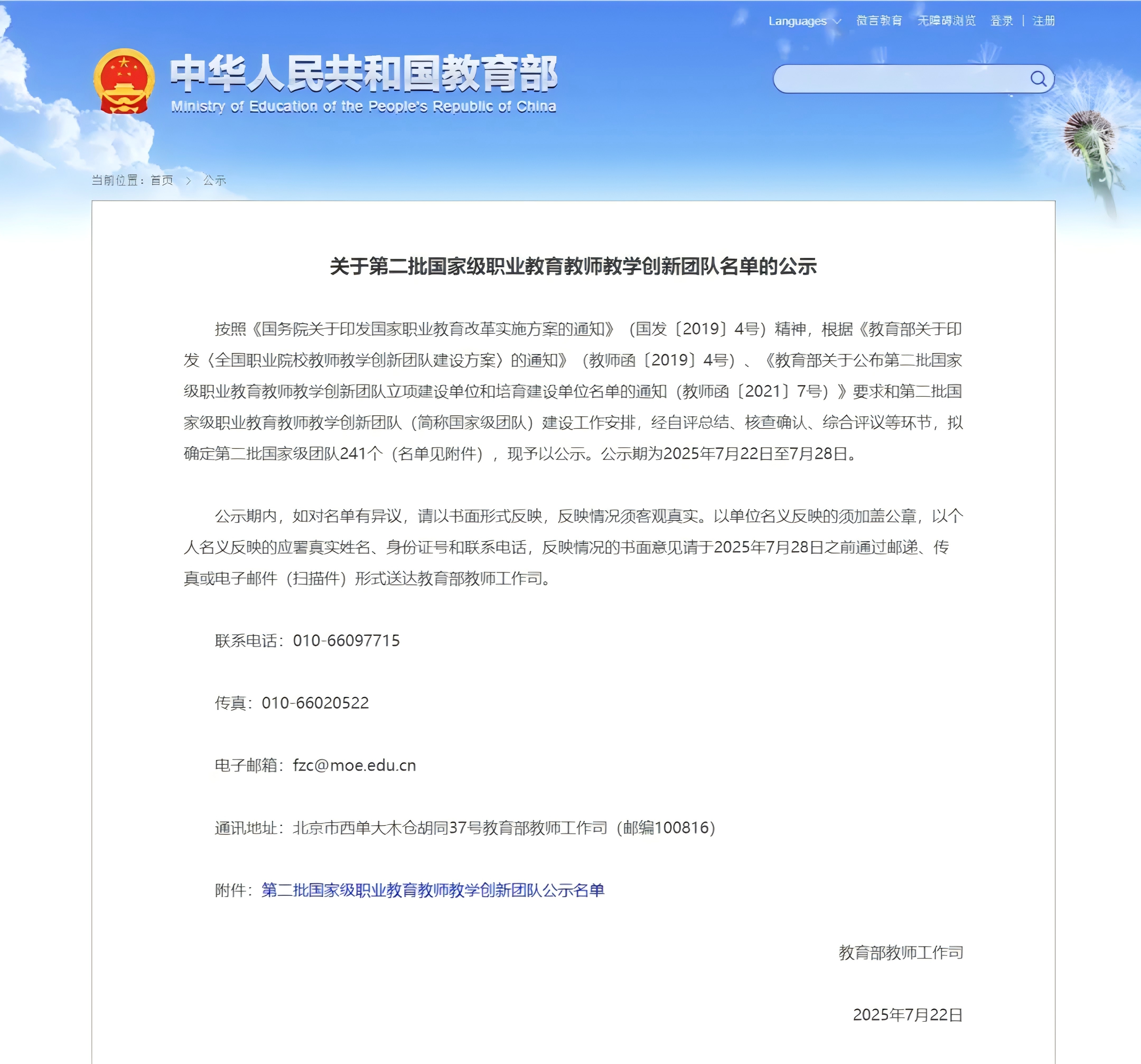 近日,教育部教师工作司对第二批国家级职业教育教师教学创新团队评审结果进行了公示。学校旅游管理专业教师教学创新团队通过验收,获评国家级职业教育教师教学创新团队。
