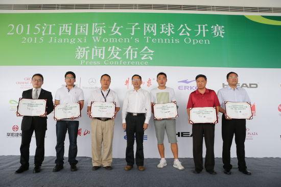 7月9日上午,2015江西国际女子网球公开赛召开新闻发布会,作为该项赛事6家合作伙伴之一,我校党委书记、校长赵恒伯出席了新闻发布会并接受颁奖。