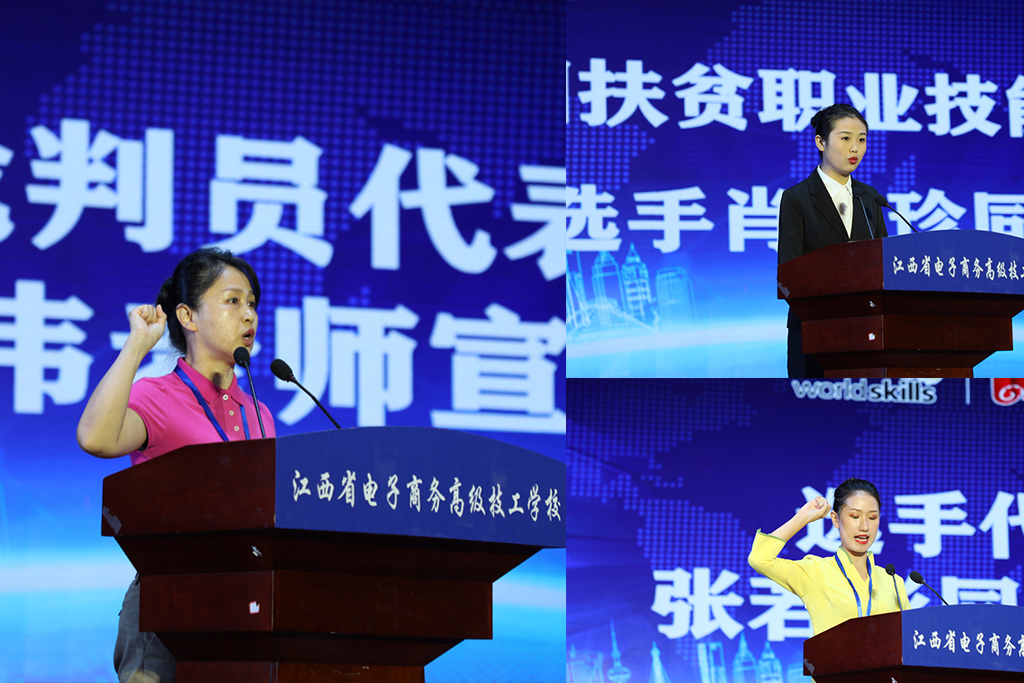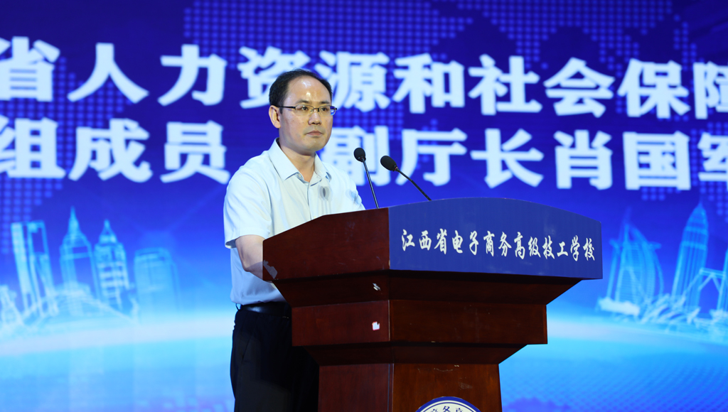 肖国军在启动仪式上讲话并宣布大赛正式启动。肖国军在讲话中代表“两项赛事”组委会对参赛的各位选手、裁判员和各赛区领导、工作人员致以诚挚的问候和崇高的敬意。他表示,职业技能竞赛是技能人才评价的重要手段,在促进技能人才培养、推动职业技能培训和弘扬工匠精神等方面发挥着重要作用。近年来,我省职业技能竞赛工作取得了优异成绩。江西电子商务高级技工学校高度重视、积极参与各项职业技能竞赛,战果喜人:赵越同学在第45届世界技能大赛全国选拔赛酒店接待项目上夺得第二名,成为世赛备选选手;去年底举办的第46届世界技能大赛江西省选拔赛,取得餐厅服务、酒店接待、时装技术、货运代理四个项目的第一名;在前不久举行的全国扶贫职业技能大赛上,肖美珍同学一举夺得餐厅服务员项目的金牌,成为首届扶贫技能大赛八位全国冠军之一,为我省争得了荣誉。肖国军对参赛选手、裁判员和赛事组织者提出三点希望:一是希望参赛选手以“幸福都是奋斗出来的”作为价值追求,珍惜机会,沉着应战;二是希望各赛区领导和裁判员,坚持创新引领、公平公正、高效节俭、绿色安全理念,严守职责,高标准、严要求;三是希望通过本次竞赛活动,全面提高劳动者素质,营造劳动光荣的社会风尚和精益求精的敬业风气,促进就业创业和经济高质量发展。
