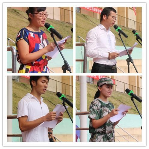 开学典礼上,对获得学校2015—2016学年的优秀教师、优秀辅导员、学业优胜奖,军训过程中涌现出来的优秀教官、优秀指导员、优秀学员等先进个人进行了表彰。教师代表旅游学院冯静、校友代表(南昌每天网络传媒有限公司董事长、北京涂涂乐信息科技有限公司董事长)尹齐胜、老生代表体育学院陈鑫、新生代表旅游学院徐义琼分别作了发言。