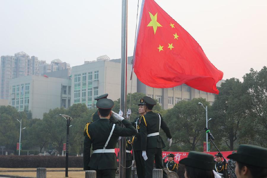 启动仪式前,举行了庄严的升旗仪式。校长助理肖长荣在仪式上讲话,代表学校党政向全校师生致以新春的祝福。他表示,培育和践行社会主义核心价值观是推进中国特色社会主义伟大事业、实现中华民族伟大复兴中国梦的战略任务。2016年我校各级团学组织认真组织开展了形式多样、主题鲜明、内容丰富的宣传教育实践活动,在青年学生中掀起了传播、推广和践行社会主义核心价值观的热潮。2017年,各级团组织要创新活动思路,丰富活动载体,提高活动实效。他寄语同学们要积极参与,勤于践行,扩大影响,让身边的每一位同学能在潜移默化中受到启发和教育。