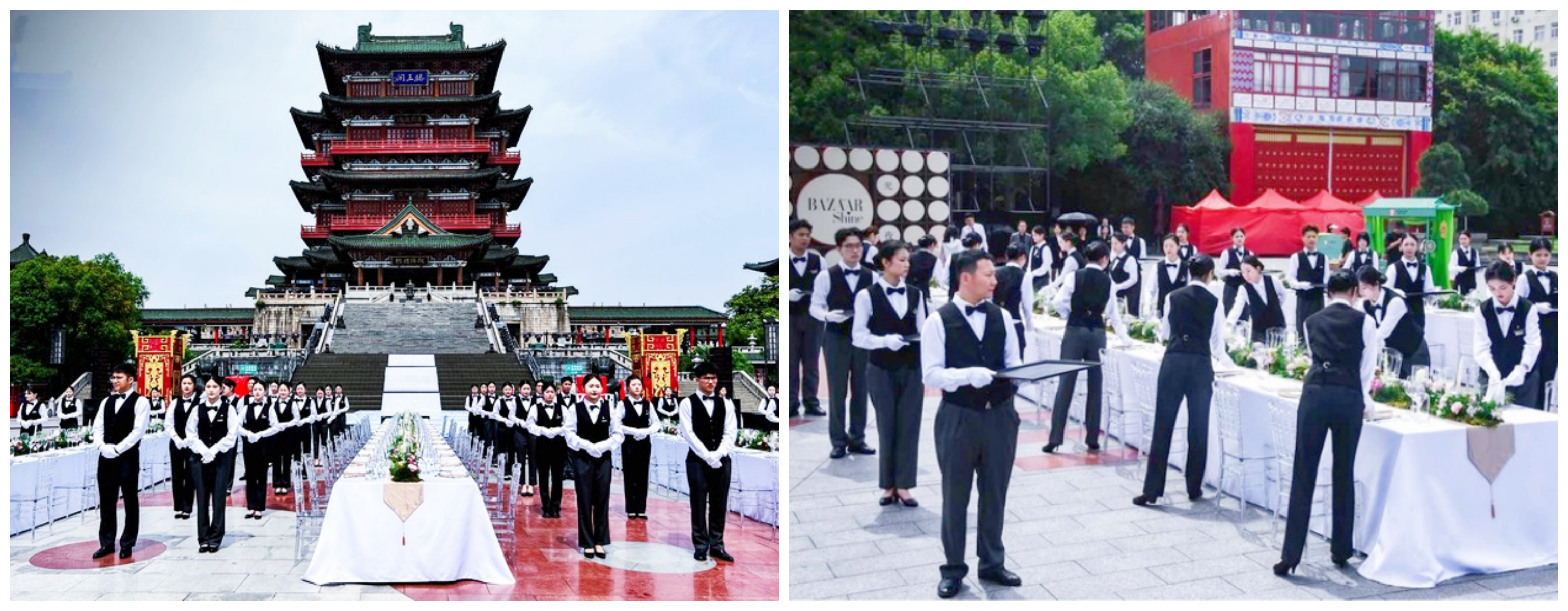 参与师生表示,在鎏光晚宴中,我们用职业技能诠释文化自信。从实训室到滕王阁,每一次斟酒、摆盘都在践行‘求真笃行 厚德强能’的校训。这份经历不仅让我们领略了传统文化与现代时尚的碰撞之美,更坚定了投身文旅行业的信念。