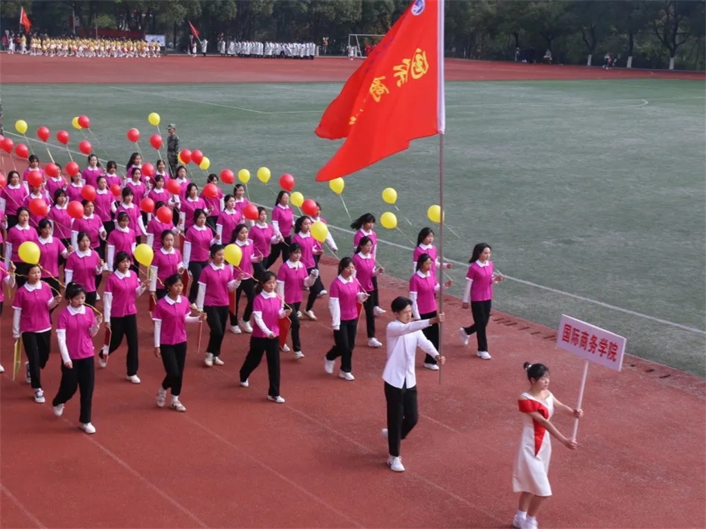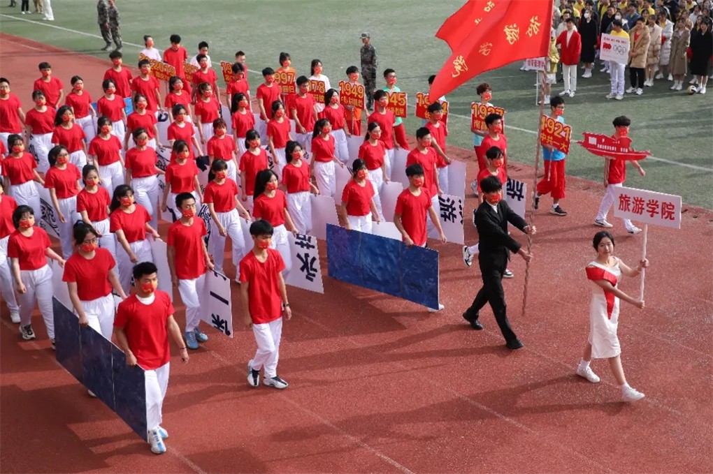 伴随着激昂的《运动员进行曲》,运动员代表队入场式成为全场瞩目的焦点。今年,各学院围绕“建党百年”主题,结合学院和专业特色,充分展现旅商学子爱党爱国之情。