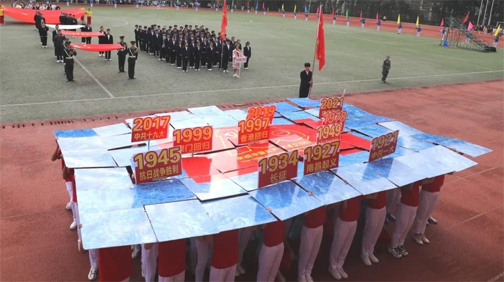 国际商务学院代表队迈着矫健的步伐,面带自信的微笑走过主席台。飘扬的气球,放飞的是他们追逐青春梦想的希望;嘹亮的口号,喊出的是青春的活力。在主席台前,国务学子精心设计的关于“党史”学习教育的展示内容,表达着对党和国家最真挚的热爱。