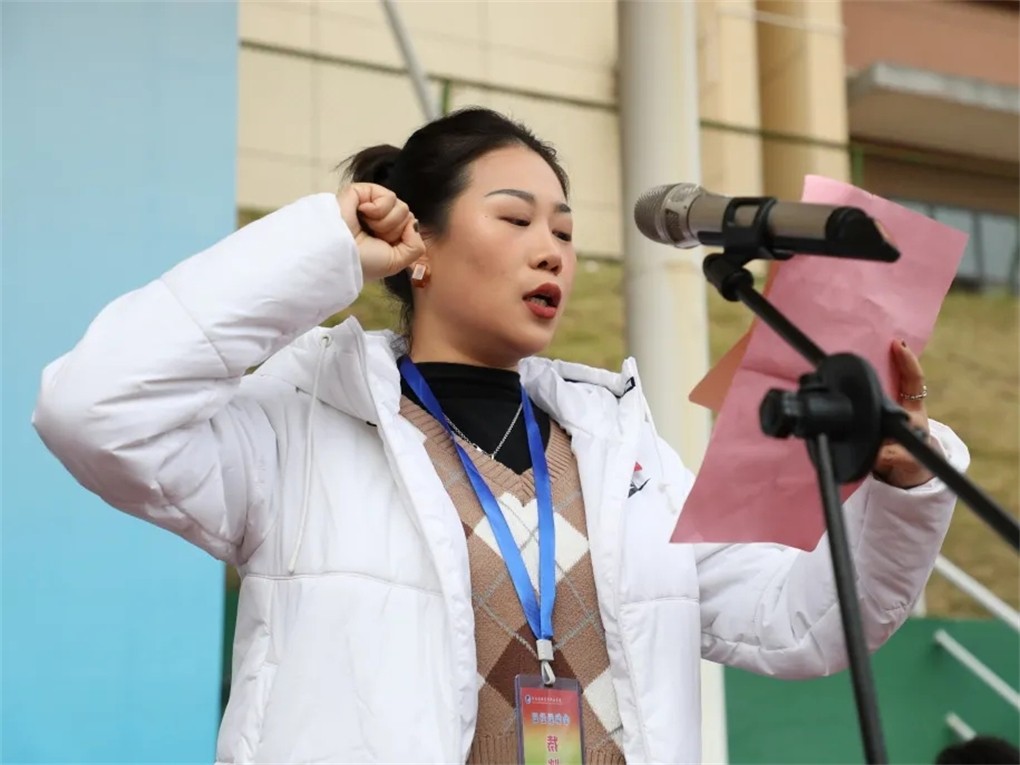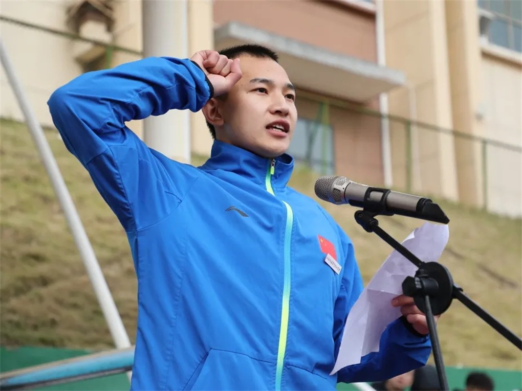 体育学院教师乔木作为裁判员代表宣誓,她表示将认真履行裁判员职责,坚决服从裁判长指挥,严格遵守裁判员纪律和竞赛规则,严格遵循公开、公正、公平的基本原则,尊重参赛选手,文明执裁,严肃认真。机电与建筑工程学院学生王鹏作为运动员代表宣誓,他表示会严格遵守学校的安排,遵守比赛规则和赛场纪律,以饱满的热情认真比赛,服从裁判,尊重对手,团结协作,顽强拼搏,赛出水平,赛出风格,做到“友谊第一,比赛第二”。