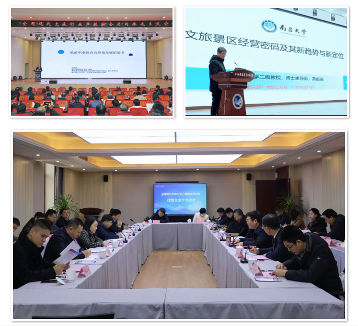 会上,王昆欣教授、黄细嘉教授分别作《旅游职业教育高质量发展的思考》《旅游目的地建设和景区经营密码及其新趋势与新定位》主旨演讲。并同步在分会场举行政校企合作洽谈会,安远县、湖口县、石城县和资溪县等县领导以及江西移动、中国工商银行等政府、企业代表参加会议。