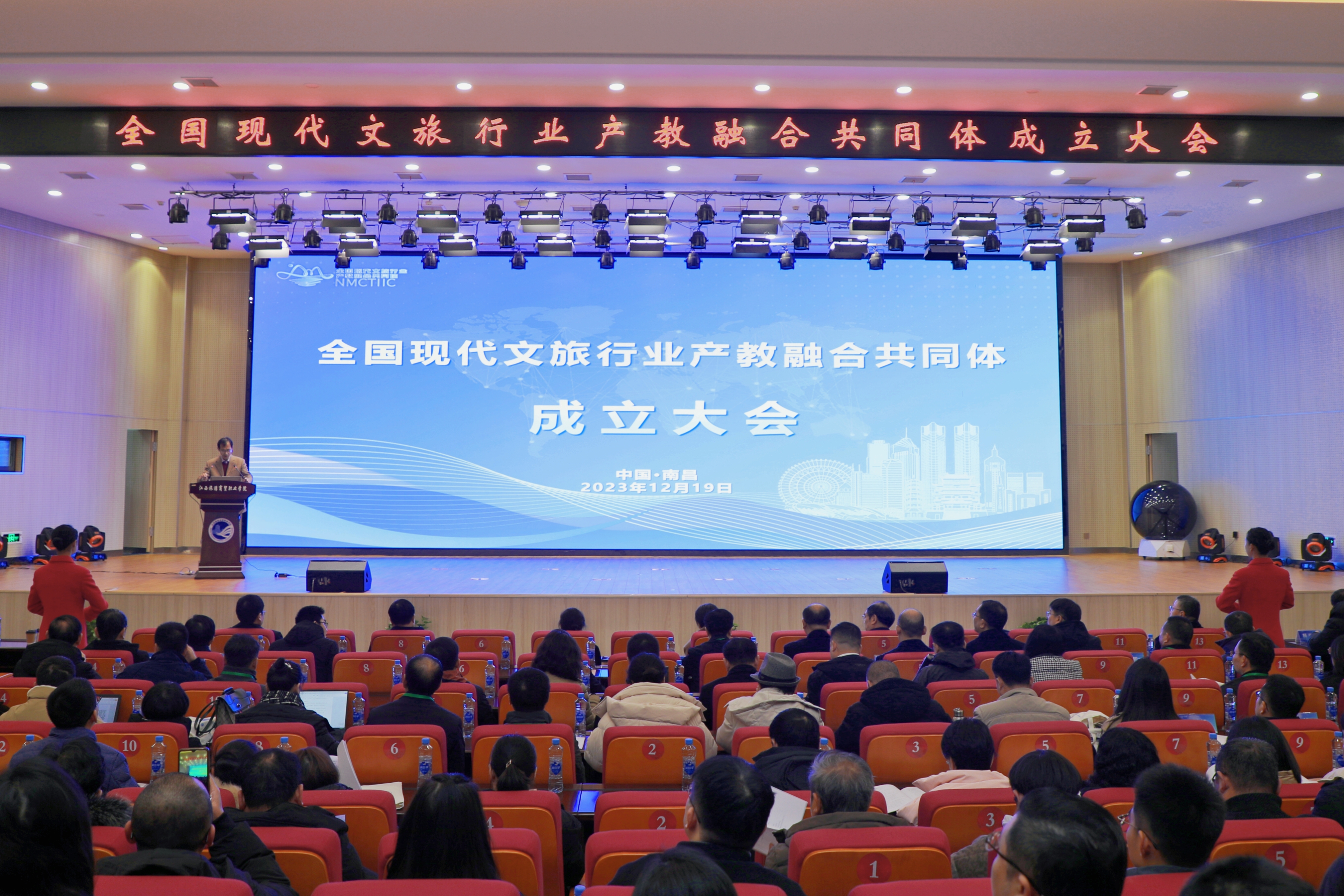 12月19日,在教育部、江西省教育厅、省文化和旅游厅、省供销合作社联合社的大力支持和精心指导下,由江西长天集团有限公司、江西科技师范大学、江西旅游商贸职业学院联合发起的全国现代文旅行业产教融合共同体成立大会在江西旅游商贸职业学院产教融合大楼报告厅举行。