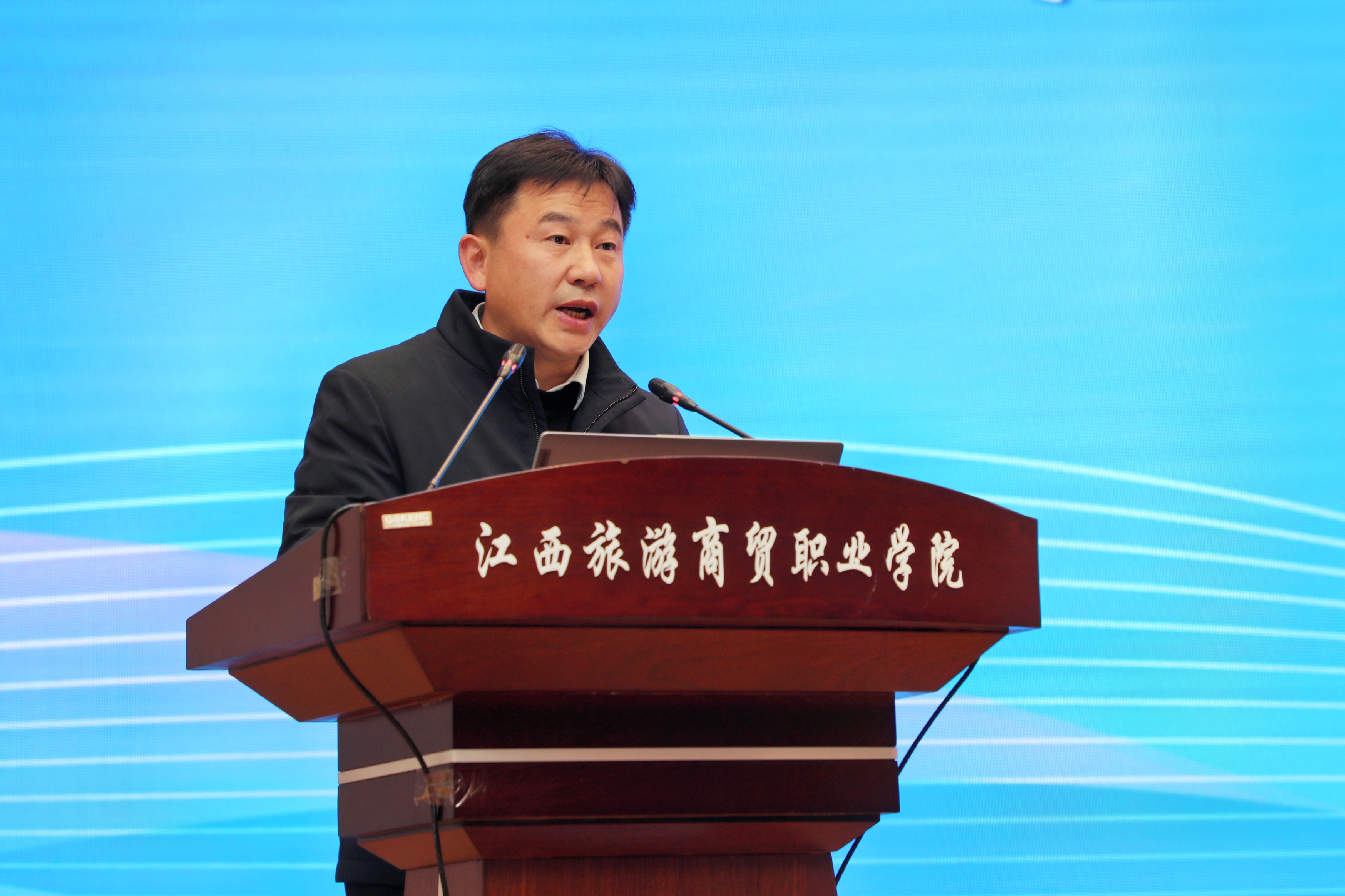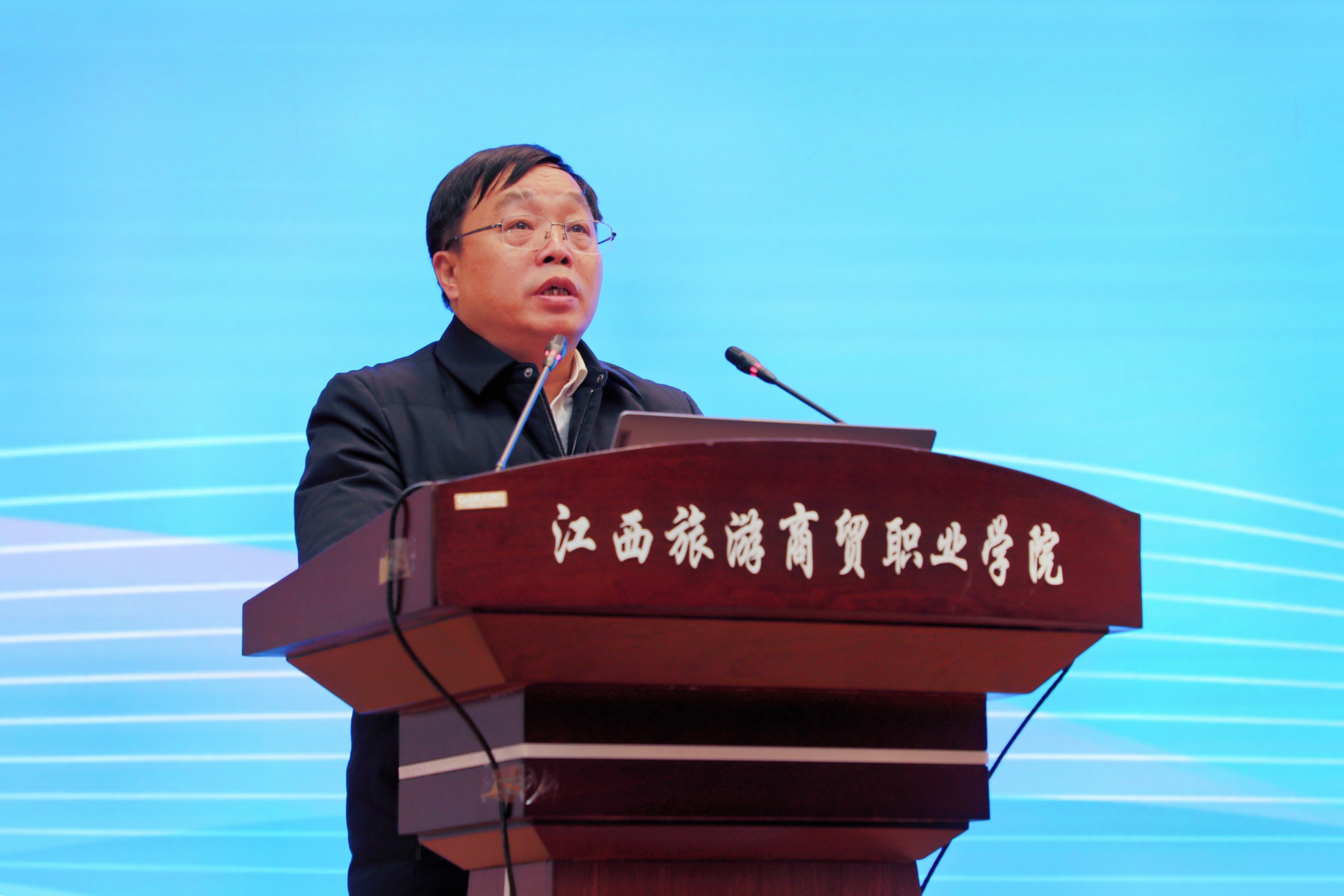 江西省供销合作社联合社党组成员、副主任杨晓琴,江西省教育厅职业教育与成人教育处二级调研员罗赛琴,世界旅游联盟研究院首席研究员、教育部全国旅游职业教育教学指导委员会副主任委员、文化和旅游部“十四五”规划专家委员会委员王昆欣教授,江西长天集团有限公司党委副书记、总经理江春林,江西科技师范大学党委委员、副校长刘刚,江西旅游商贸职业学院党委书记吴小平,党委副书记、院长彭元,以及来自高等院校、政府机构、科研机构、行业协会和产业上下游企业等80家单位的120余位代表参加大会。大会由江西旅游商贸职业学院党委副书记方卫武主持。