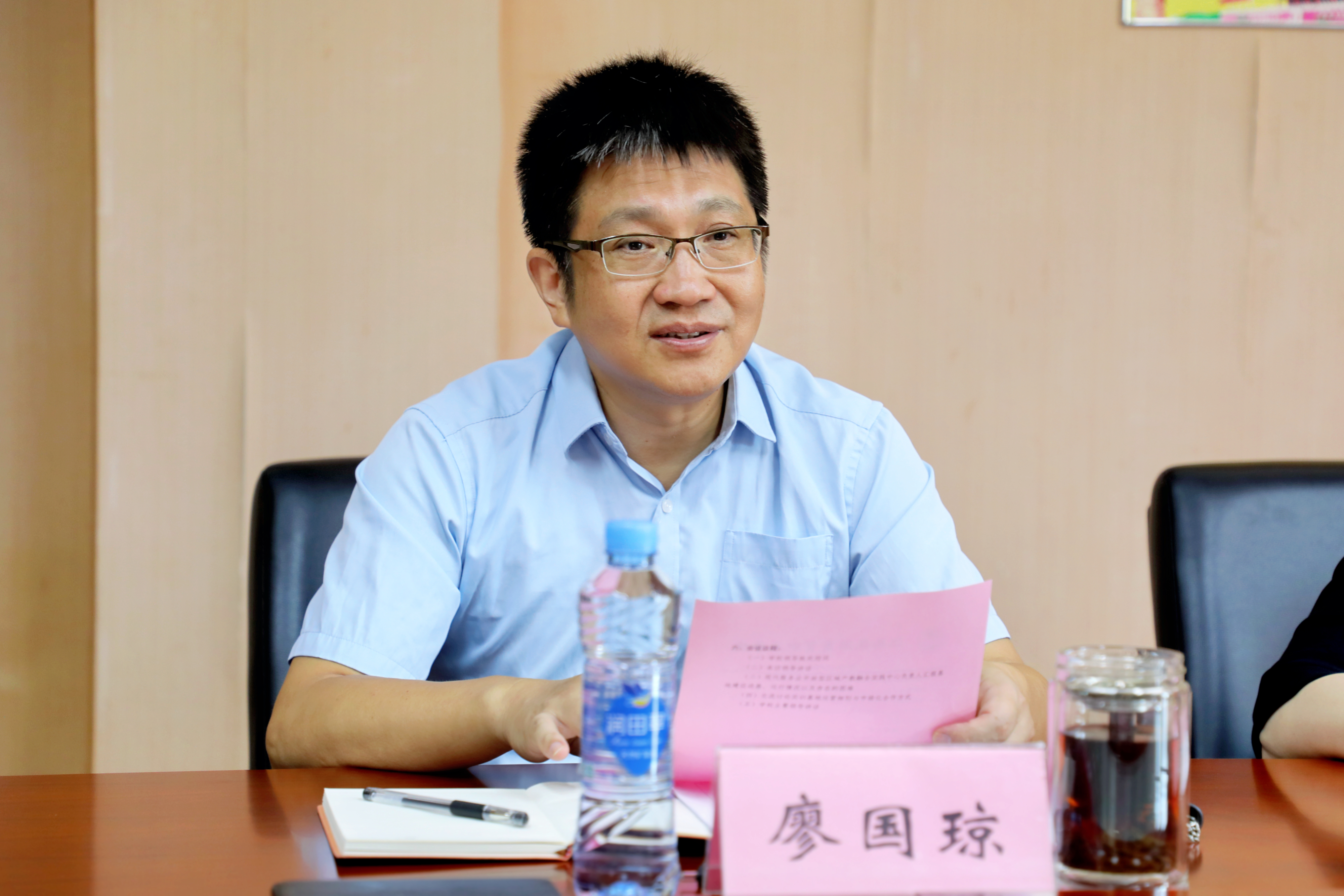 廖国琼对省级产教融合公共实训基地专家组一行的到来表示欢迎。他表示,学校始终将产教融合作为高质量发展的关键抓手,不断优化实训基地布局与功能,进一步强化实训基地的公共服务属性。要充分利用此次基地建设契机,实现资源的统筹规划,做好校内学生的公共实训以及校外综合实训。同时,他指出,学校将对标省级实训基地各项评估指标,细化工作举措,切实做好第一批、第二批基地的验收准备工作。