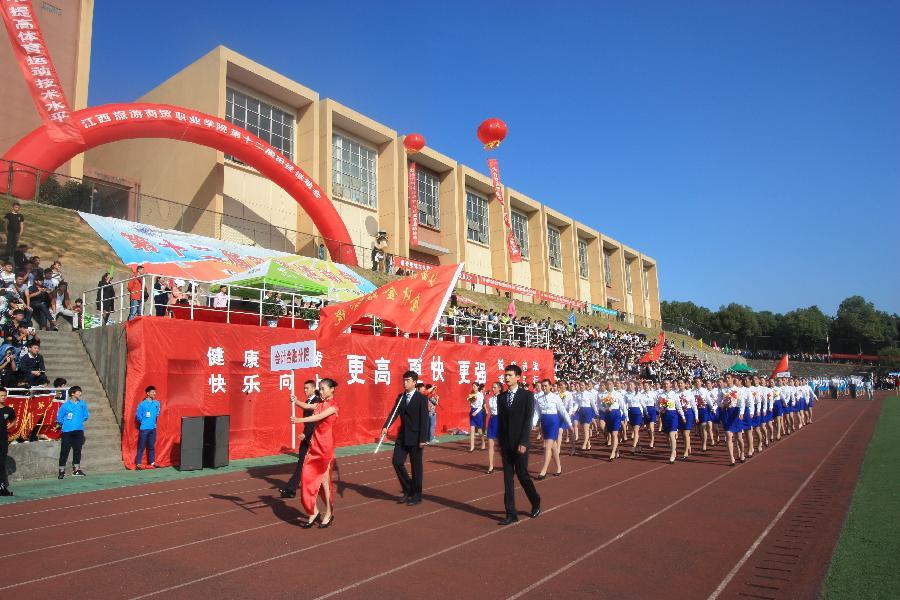 上午9时,沐浴着灿烂的阳光,乘着飒爽的秋风,运动会开幕式正式开始。伴随着《运动员进行曲》激昂的旋律,着装整齐、朝气蓬勃的彩旗队、鲜花队、裁判员队以及7个分院的学生代表队昂首步入会场,嘹亮的口号、坚定的步伐彰显出青年学子的青春风采,他们用多姿多彩的表演展示了学院的特色,诠释着美丽的中国梦和旅商梦。