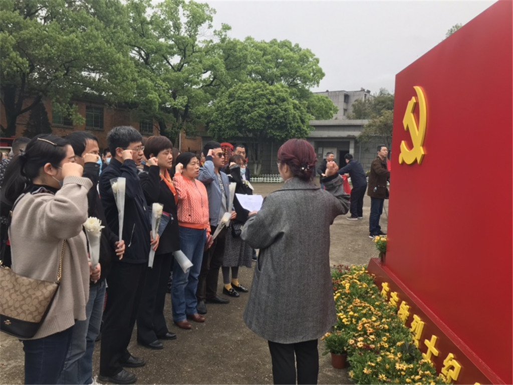 在方志敏烈士墓前,在鲜红的党旗下,学校党员干部重温入党誓词,对着党旗进行宣誓,行默哀、鞠躬礼,向方志敏烈士敬献花圈。在方志敏烈士陈列馆,大家聆听了他的生平事迹,缅怀他的光辉一生,重温了《可爱的中国》、《清贫》等脍炙人口的传世之作,表达了对革命先烈的深切哀思和崇高敬意。