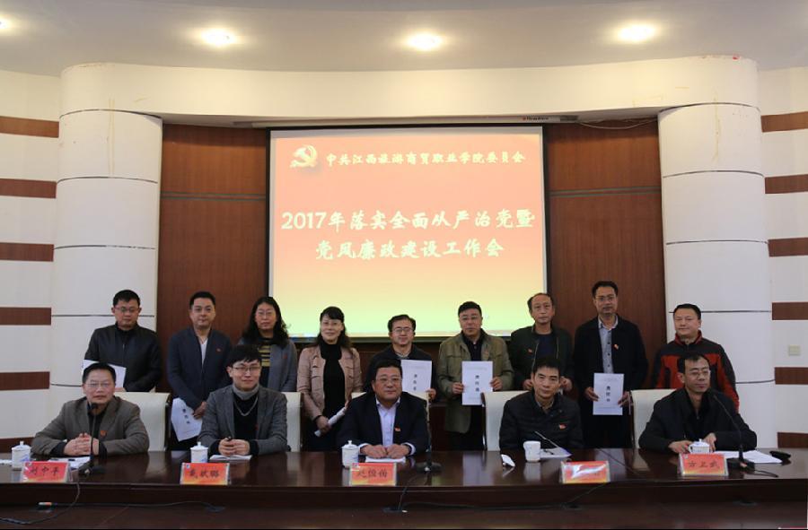 会上,学校领导班子成员、各学院、各部门主要负责人分别和学校党委书记赵恒伯签订了全面从严治党责任书,进一步明确全面从严治党主体责任。(宣传部供稿)