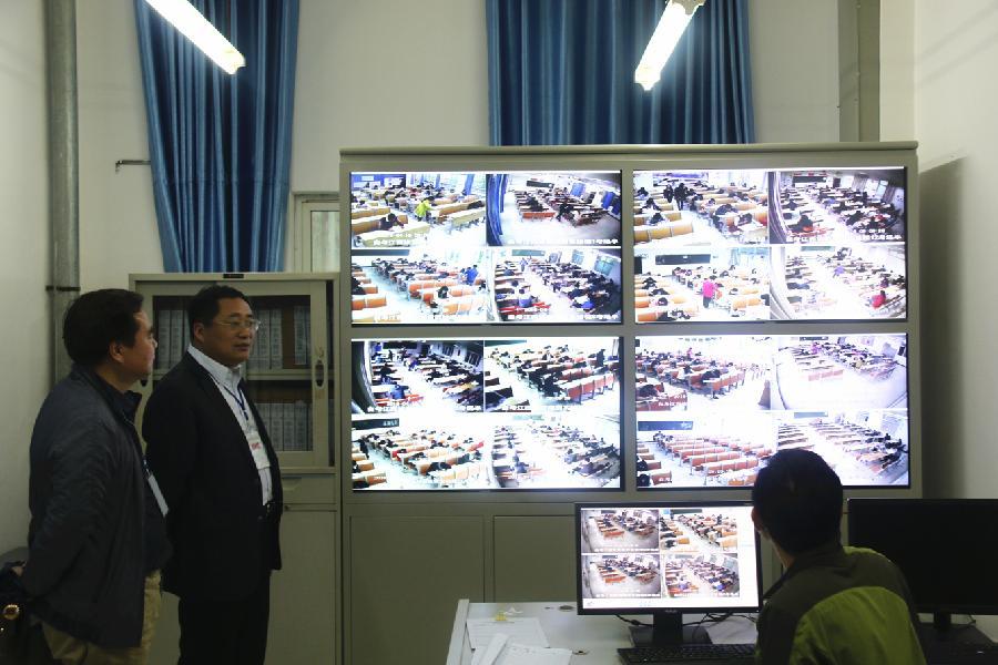 在副校长杨福盛、纪委书记刘中平等的陪同下,赵恒伯书记、龚艳处长分别深入考点考场检查考试实施情况。逐层逐个考场查看了考场纪律情况,来到考点视频监控室察看整个考点的考务情况。看到考点环境整洁、考试宣传工作到位、监考员监考认真、考生考试正常。赵恒伯书记、龚艳处长十分高兴,对学校高度重视自考工作,认真负责做好考务工作表示肯定。巡视期间,学校分管副校长杨福盛向赵恒伯书记、龚艳处长简要汇报了学校自学考试组织情况。他从学校建设视频监控室、配置身份证识别仪、电子扫描仪、屏蔽仪等各方面加强了考试的技防工作;从严格考试程序、加强纪检监察、强化责任追究、加强考务协调、举办监考员培训班、加强对考生诚信考试的宣传等方面,强化了考试的人防工作;学校还认真做好考点考场的卫生环境工作,努力为考生创造良好的考试环境。