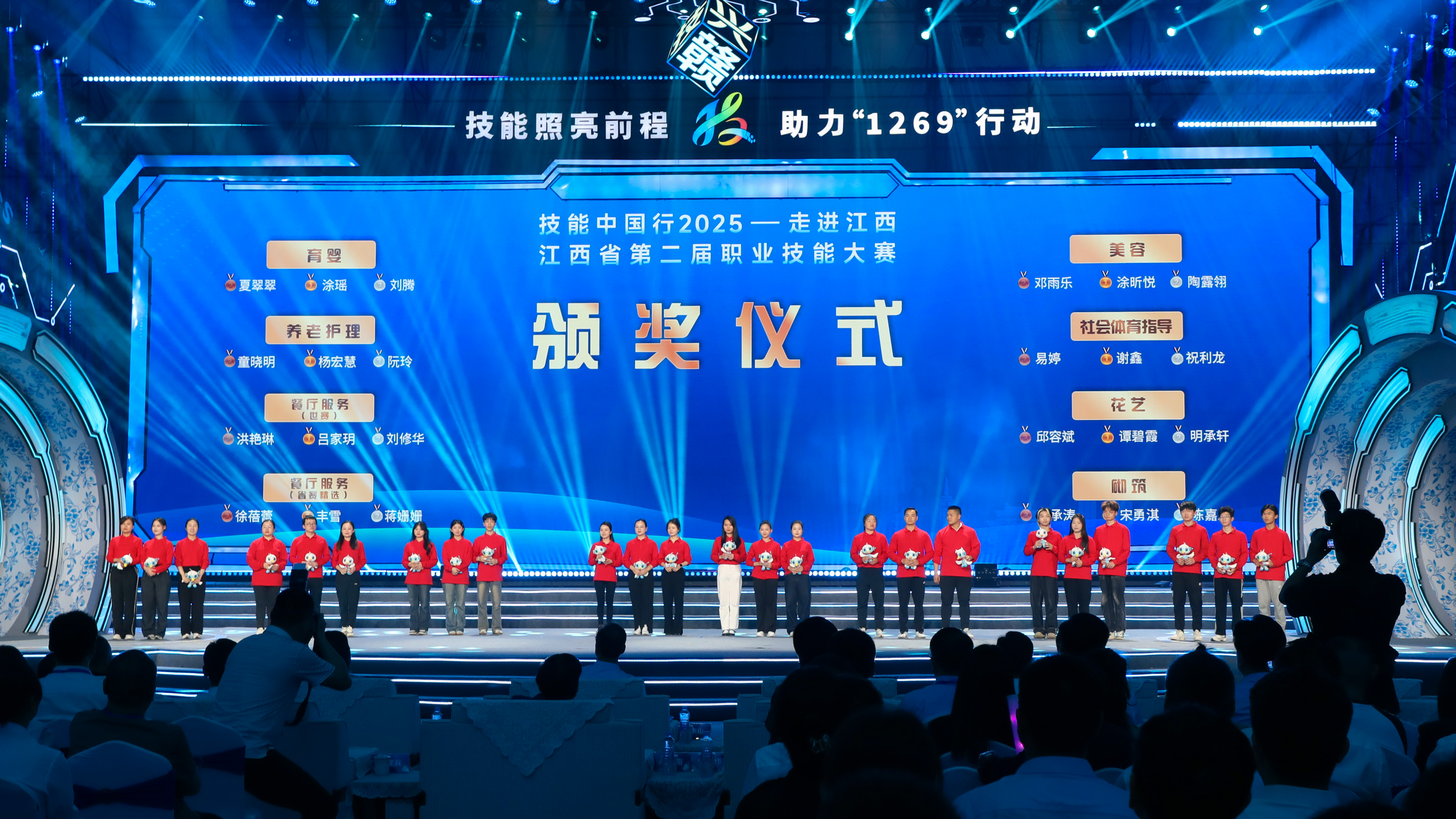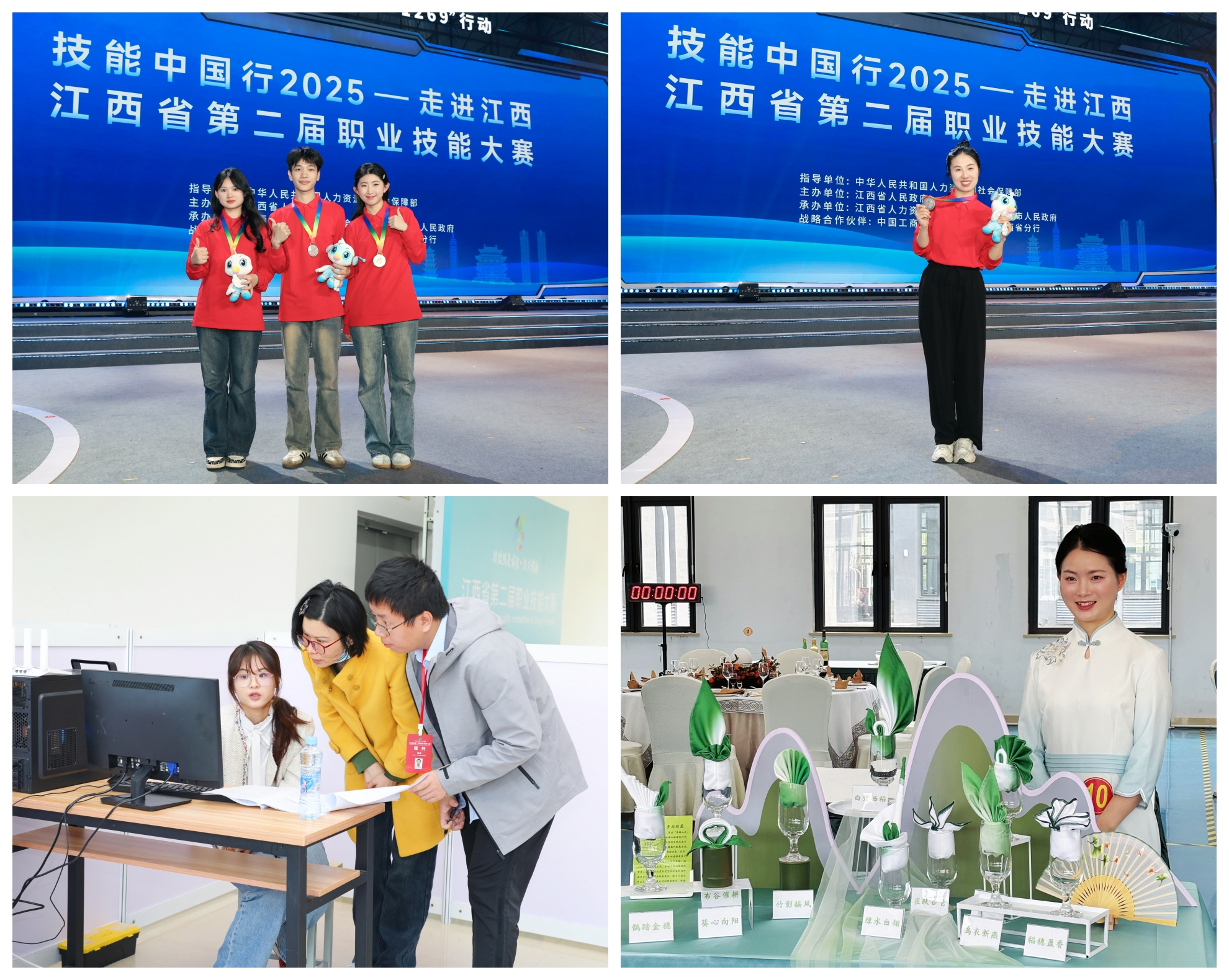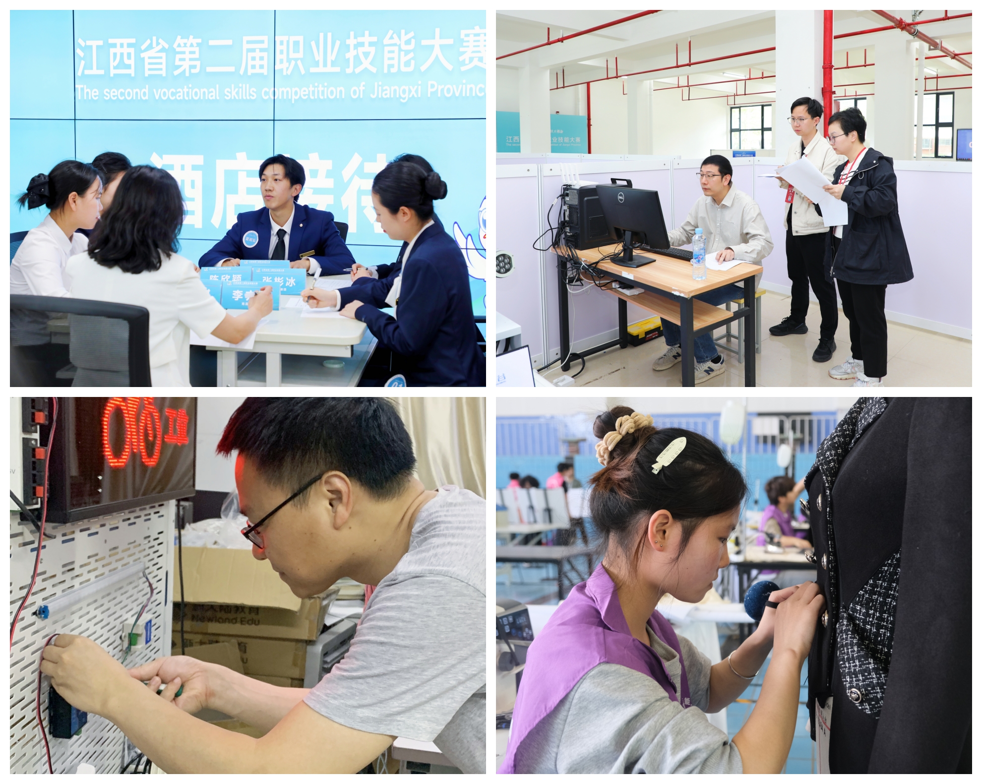 本次大赛,我校共派出30余名师生参加18个竞赛项目,经过激烈比拼角逐,荣获5枚金牌、6枚银牌、4枚铜牌的佳绩,其中人工智能工程技术、物联网安装与调试、餐厅服务(世赛)、酒店接待、时装技术5个项目将代表江西省参加第三届全国职业技能大赛。参赛教师陈振宇、胡伟、邹雯诗、蒋姗姗、刘腾、张艳君等6位荣获“江西省技术能手”荣誉称号。