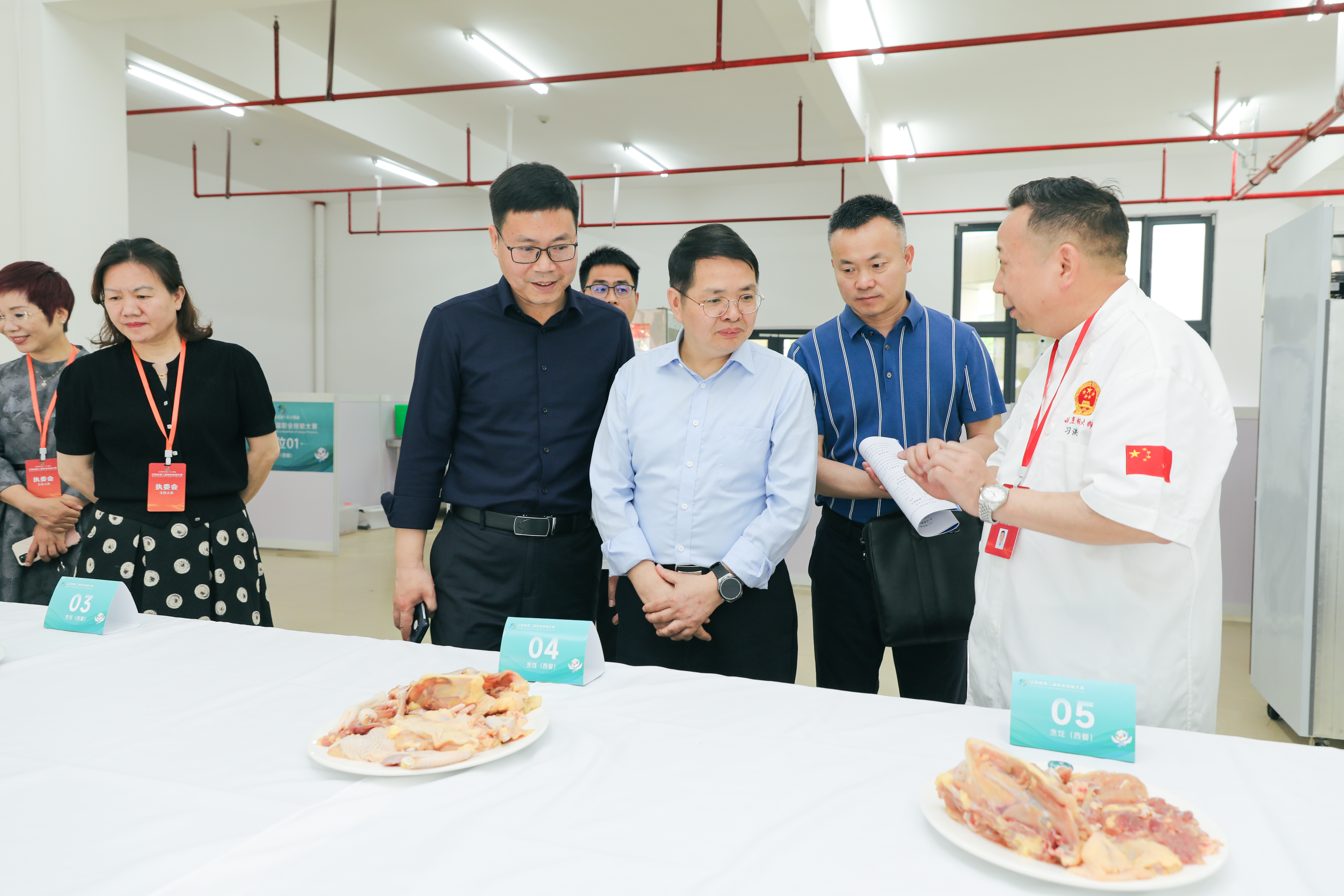 比赛期间,学校党委书记吴小平陪同江西省人力资源和社会保障厅副厅长刘克琦、竞赛管理处处长雷鹏及相关工作人员,深入酒店接待、中式面点、烹饪(西餐)、电子技术、人工智能工程技术等比赛场地观摩比赛,为各位选手加油鼓劲,勉励各位参赛选手坚定信心,放下包袱,调整好心态,在赛场上奋力拼搏,以精湛技艺赛出优异成绩。