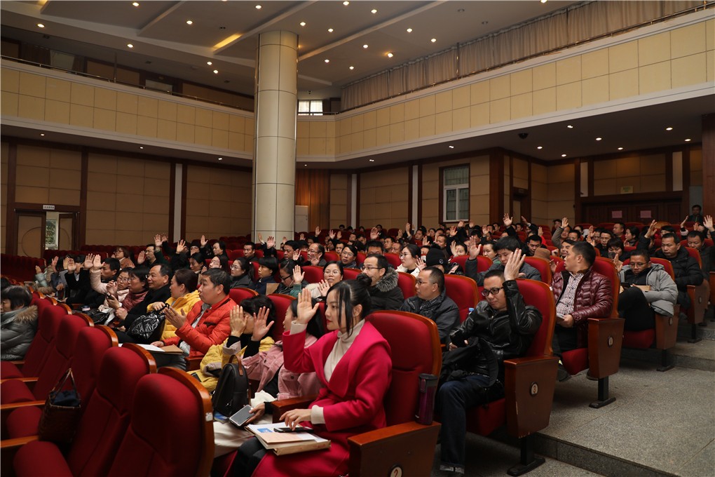 年末将至,2019-2020学年第一学期即将结束,为充分发挥学校教职工代表大会的职能作用,让教职工主动投身学校教育事业,积极参与学校管理,为学校各项事业高质量发展建言献策,1月5日,学校第五届二次教职工代表大会在图书馆学术报告厅召开。省供销社直属机关工会主席周文荣到会并讲话。吴小平、方卫武、杨福盛、刘中平、邹文虎、文玉菊、张甫旺、肖长荣、樊盛春、龙婷等全体校领导班子成员,107名教职工代表、3名特邀代表及17名列席代表,参加了本次会议。
