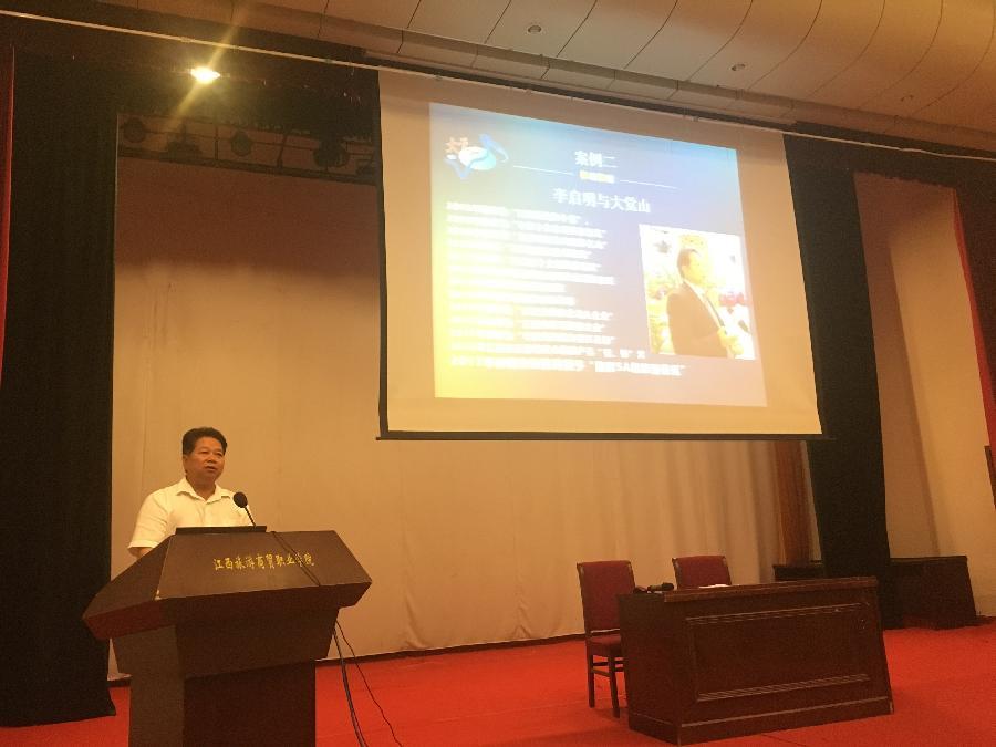 为推动我校校企深度融合育人工作,让企业文化走进校园、职业精神融进课堂、企业家走进学生生活,5月24日晚,我校“企业家大讲堂”开讲!国家AAAAA景区—江西大觉山景区集团有限公司董事长李启明应邀来校作了题为“挖掘自身潜力 实现自己梦想”的首讲讲座。讲座由学校党委委员、副校长范秀仁教授主持。