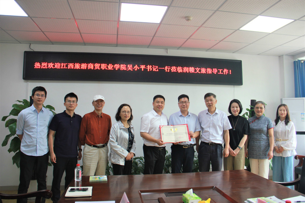 期间,吴小平为高发钱颁发了聘书并合影留念,聘任江西润赣文化旅游有限公司总经理高发钱为江西旅游商贸职业学院教育旅游体验区管理工作委员会景区顾问。