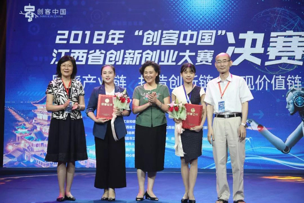 2018年“创客中国”江西省创新创业大赛分创客组和创业组,自今年5月23日正式启动以来,历经网络盲审、初赛、复赛和决赛四个环节,吸引了高校博导、教授,还有国内企业家以及外籍华人企业家等社会各领域的参赛群体,也有博士、硕士、本科、专科等各层次在读或毕业的大学生参赛。我校参赛团队在学历不具优势的情况下,和高学历精英群体以同样的评分标准进行比赛,竞争激烈程度可想而知,但队员们一路走来,勤奋刻苦,积极备赛,钻研了各种新知识,克服了各种新困难,从导师培训、团队选拔、项目培育、赛前辅导,到暑假举办重点参赛项目“特训营”,对项目进行反复辅导、打磨、路演,最终拿下这个含金量十足的一等奖,彰显了学校创新创业类大赛整体实力。