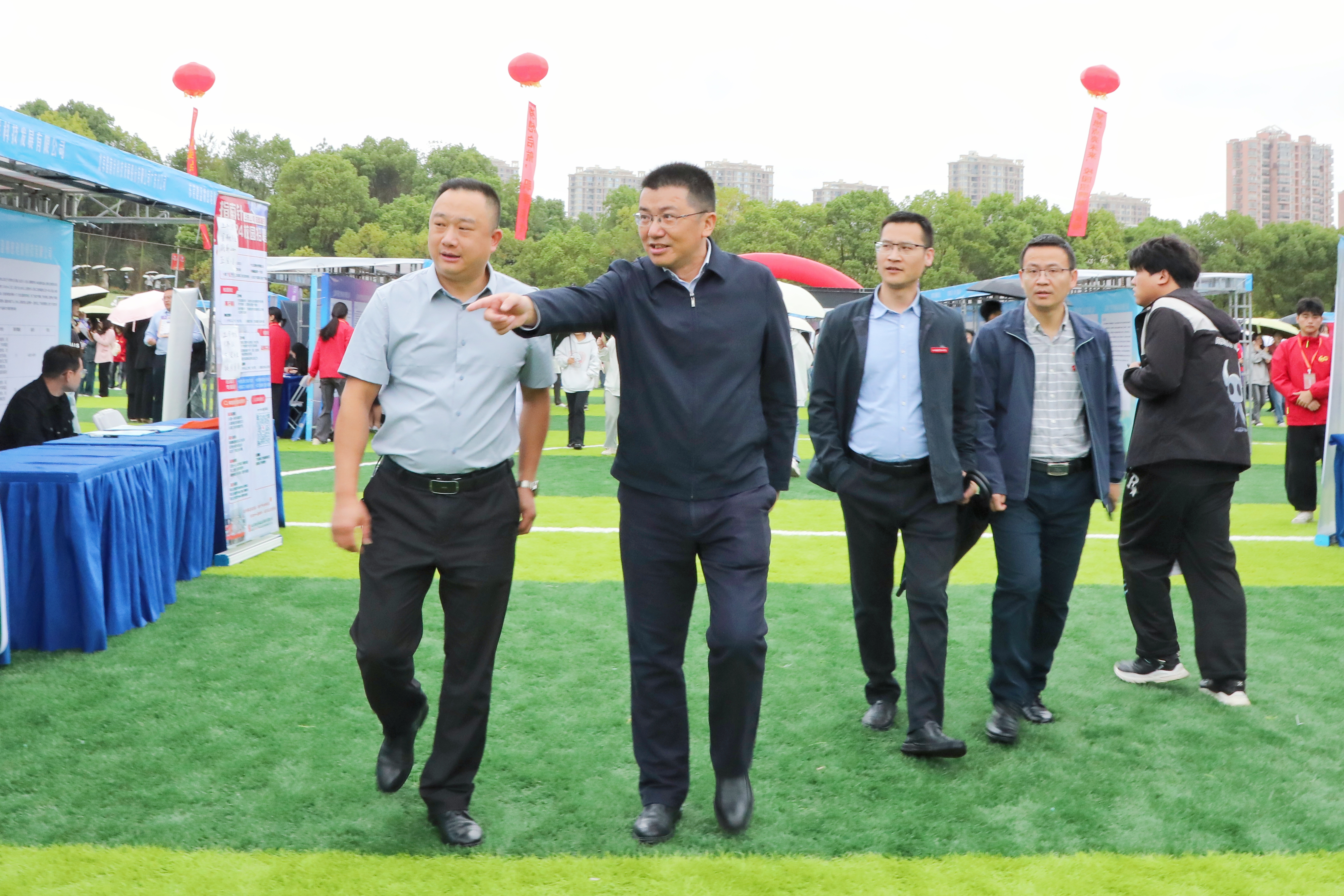 江西省教育评估监测研究院党委书记刘静俭、学校党委书记吴小平现场调研用人单位人才招聘需求,了解毕业生现场求职情况。
