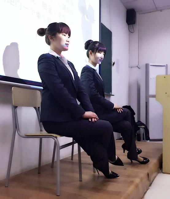 在讲座现场,胡红老师结合财经职场礼仪规范,分别讲解了为什么要学习礼仪,个人形象塑造,形态礼仪以及求职面试礼仪。她说,礼仪不仅拘泥于行为规范,日常的穿衣打扮是否得体也是礼仪的一门重要的学问。针对同学们日常穿着打扮,胡红老师分别介绍了男士的着装和搭配及女士的日常妆容和衣着等,并现场指导同学站姿、走姿以及坐姿。
