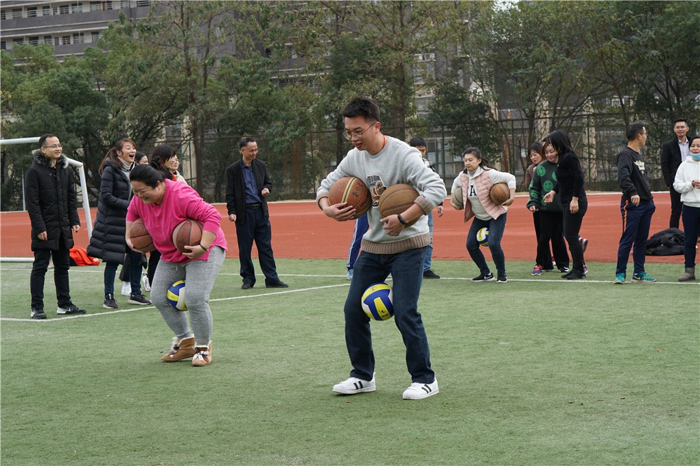 为丰富我校教职工文体生活,增强教职工身体素质,12月4日下午,我校在田径场举行第六届教职工趣味运动会。全校教职工分为11支代表队参加了“同舟共济”“夹乒乓球接力”“保龄球”“袋鼠跳接力”“摸石过河接力”“赶‘猪’跑接力”“企鹅漫步接力”七个比赛项目的角逐。
