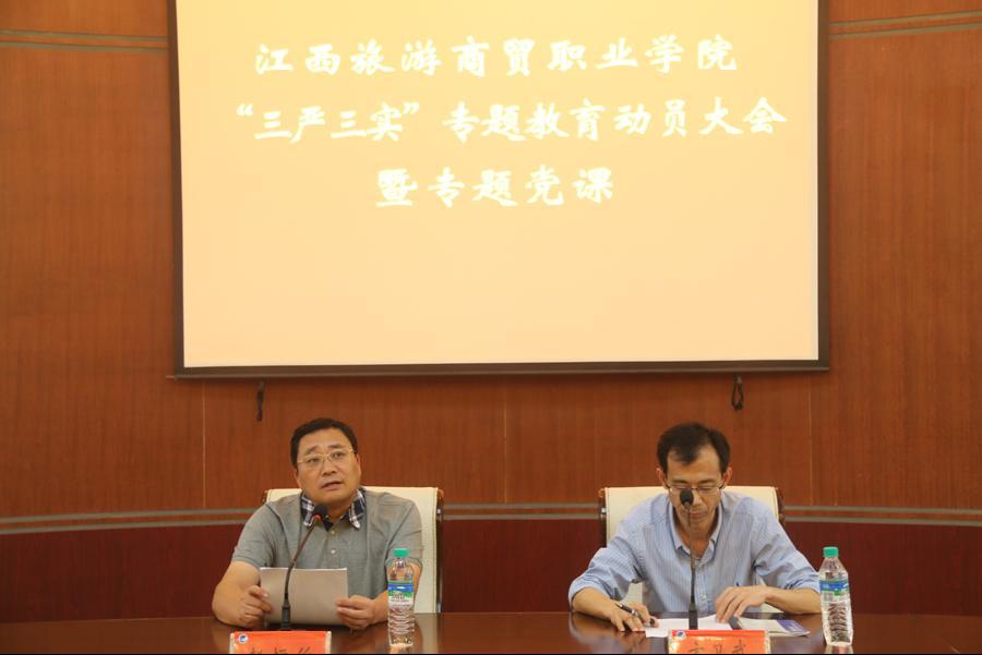 按照中央和省委开展“三严三实”专题教育部署和要求,根据省社党组的具体布置,6月10日下午,学校在行政楼一楼会议室召开了“三严三实” 专题教育动员部署会暨专题党课,部署学校“三严三实”专题教育工作。党委书记、校长赵恒伯在会上给全体副科以上党员干部上了《求真笃行、知行合一,自觉践行“三严三实”,为学校内涵、特色、品牌发展凝心聚力、增光添彩》的重要党课。会议由党委委员、副校长方卫武主持。