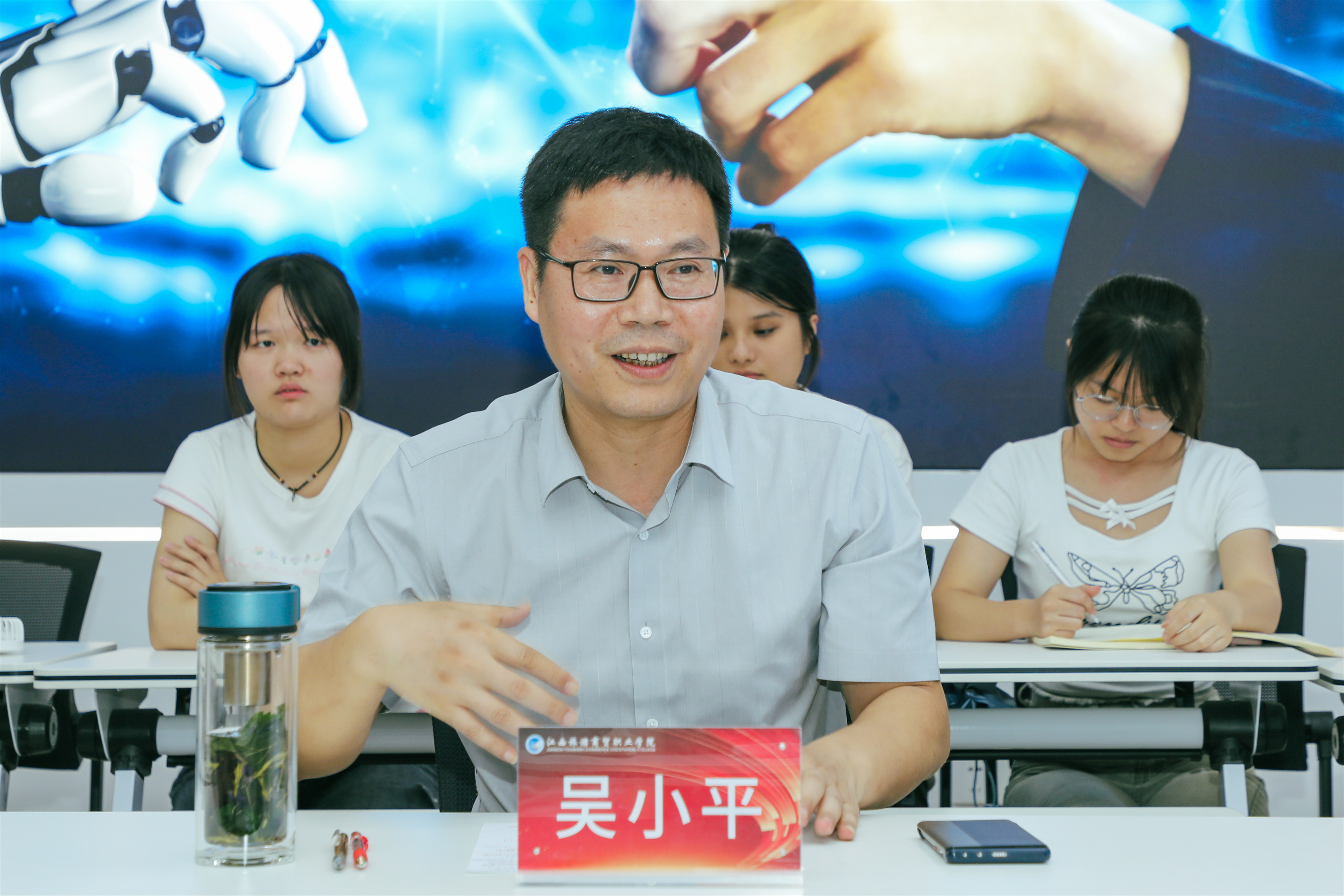 吴小平从实战角度提出简历制作要“突出职业技能证书”“细化目标行业分析”等建议,帮助同学们完善求职材料,提升面试竞争力。他表示,能够见证同学们的成长和进步甚感欣慰,未来无论是考研还是就业,希望同学们都要保持良好心态。他以“用心、用力、用情、用智”八个字寄语同学们,鼓励大家要明确目标定位,在人生道路上既要“大胆想”,敢于追逐梦想;又要“沉住气”,脚踏实地积累。既要“勇敢干”,勇于接受挑战;又要“勤提升”,在学习、思考、实践、总结中不断成长。