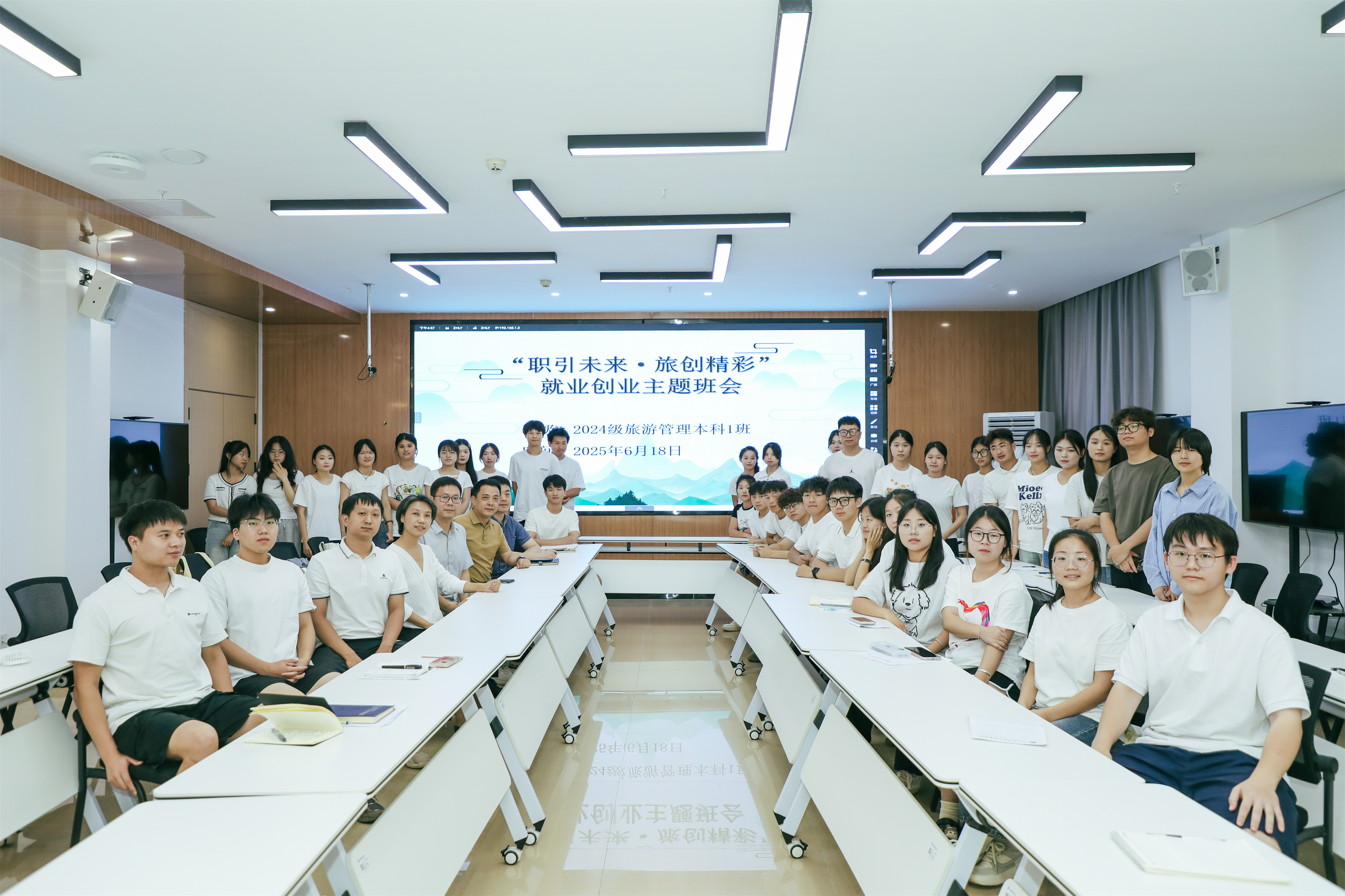 6月18日下午,学校党委书记吴小平走进联系班级2024级旅游管理本科1班,参加“职引未来·旅创精彩”就业创业主题班会活动。与同学们面对面共话职业规划。