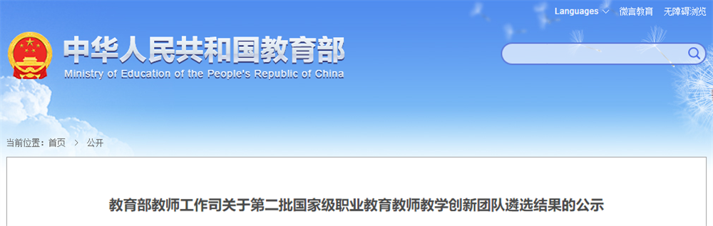 学校入选第二批国家级职业教育教师教学创新团队立项建设单位
