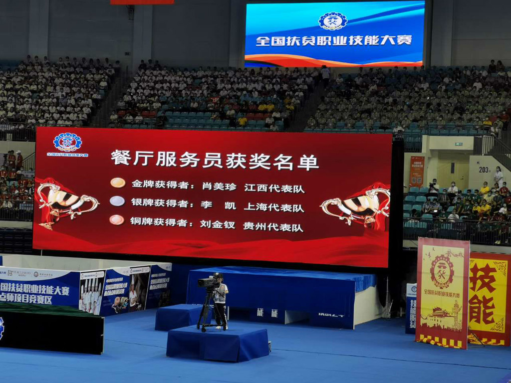 8月13日,由人力资源社会保障部、国务院扶贫开发领导小组办公室联合主办的“全国扶贫职业技能大赛”在山西省大同市闭幕。经过四天的激烈角逐,我校2018级酒店管理专业学生肖美珍凭借稳定的心理素质和出色的技艺发挥,荣获餐厅服务项目金牌,为江西省、为学校争得了荣誉。