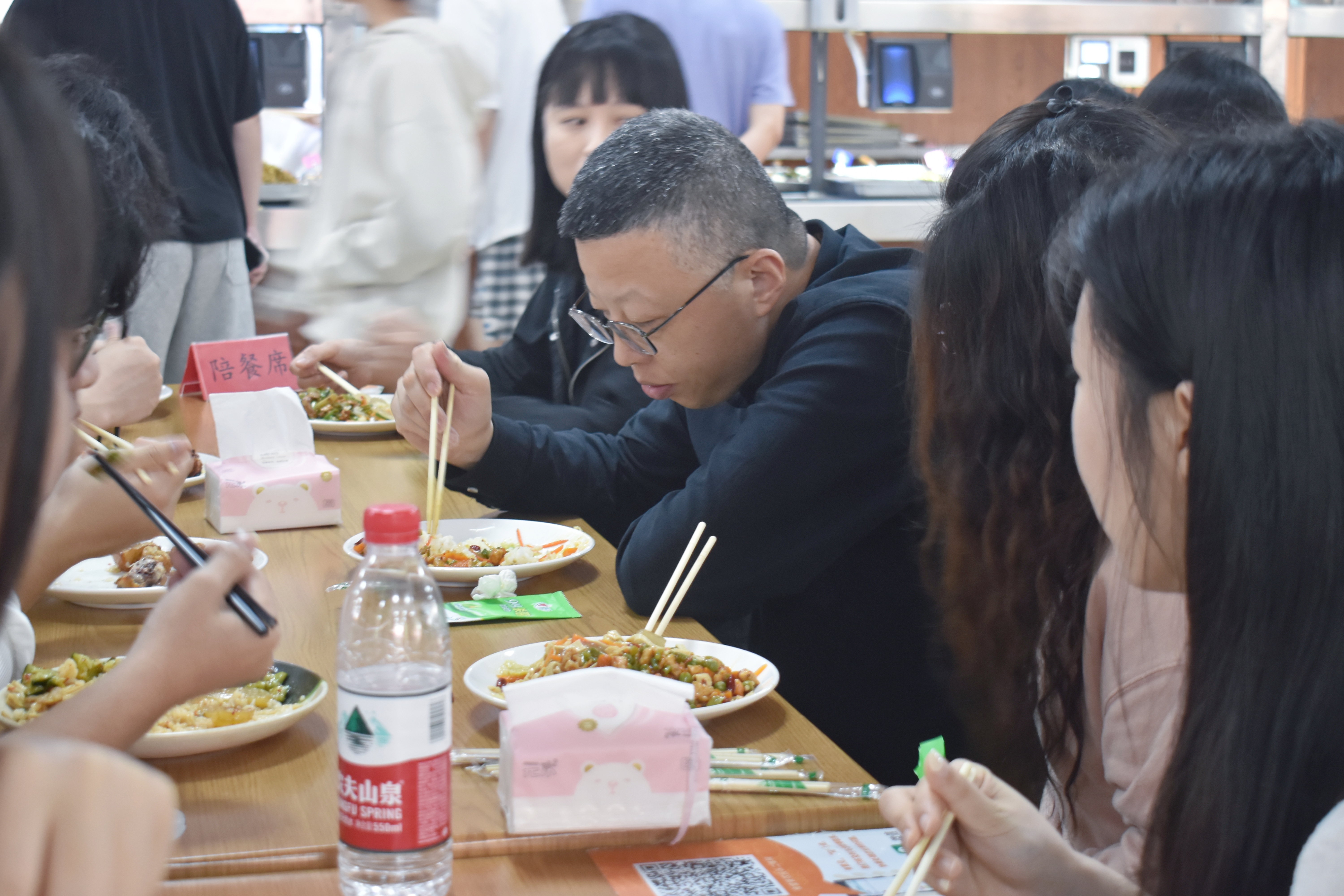 4月30日中午,学校党委副书记、院长彭元与2023级物流管理本科1班学生代表共进午餐,与同学们话成长。