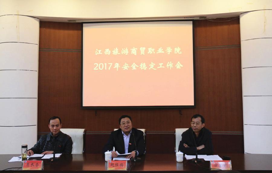 就做好学校2017年安全稳定工作,赵恒伯书记强调:一是思想上要再提高。无论从宏观层面还是学校层面来看,安全稳定工作对学校来说是一项基础性、保障性、根本性的工作,不仅关系到广大师生的生命和财产安全,也关系到学校和社会的和谐稳定,是办学发展的前提条件,对确保学校正常教学工作、生活秩序和社会稳定至关重要。没有安全稳定的办学环境,“抓内涵、凝特色、树品牌”发展战略就会像无本之木、无源之水,成为空谈。