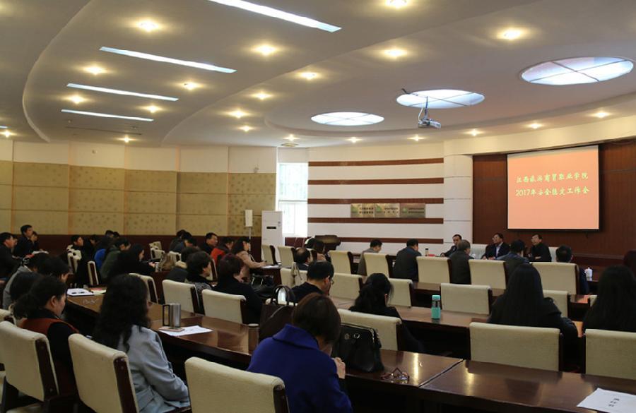 会上,党委委员、校长助理肖长荣传达学习了全国学校安全工作电视电话会议精神和全省教育系统安全稳定暨信访工作会议精神,并从认清严峻形势,提高安全意识;明晰责任主体,强化担当要求;履职尽责,扎实做好安全稳定工作;抓住重点红线,严防群体事件发生;强化安全教育,提高学生安全防范意识;加强值班制度,确保及时处理等七个方面就学校2017年安全稳定工作作了具体布置。(宣传部供稿)