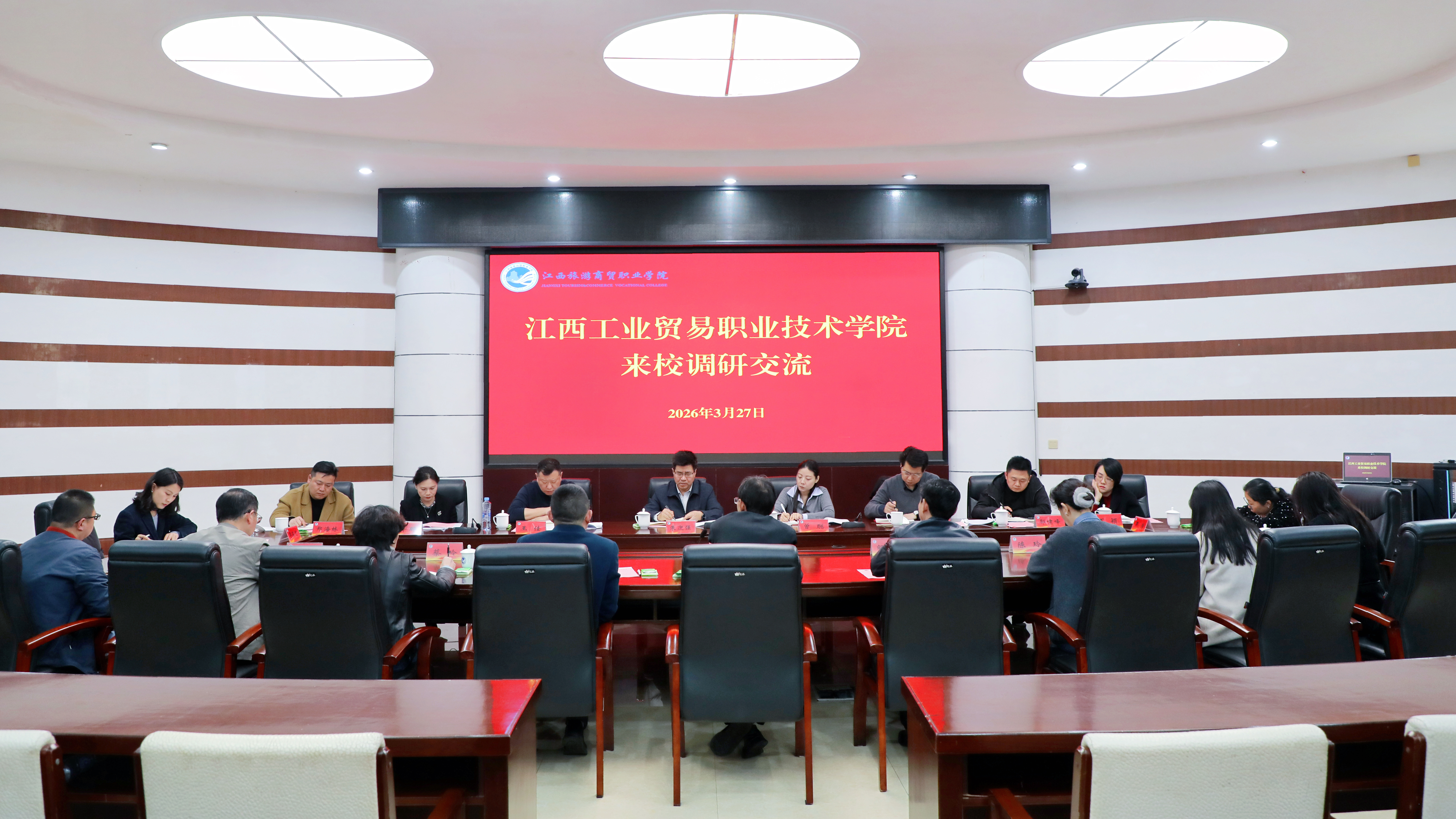 3月27日下午,江西工业贸易职业技术学院党委副书记、院长朱迎强一行来校调研交流,学校党委副书记方卫武热情接待了朱迎强一行,并在行政楼一楼会议室举行座谈