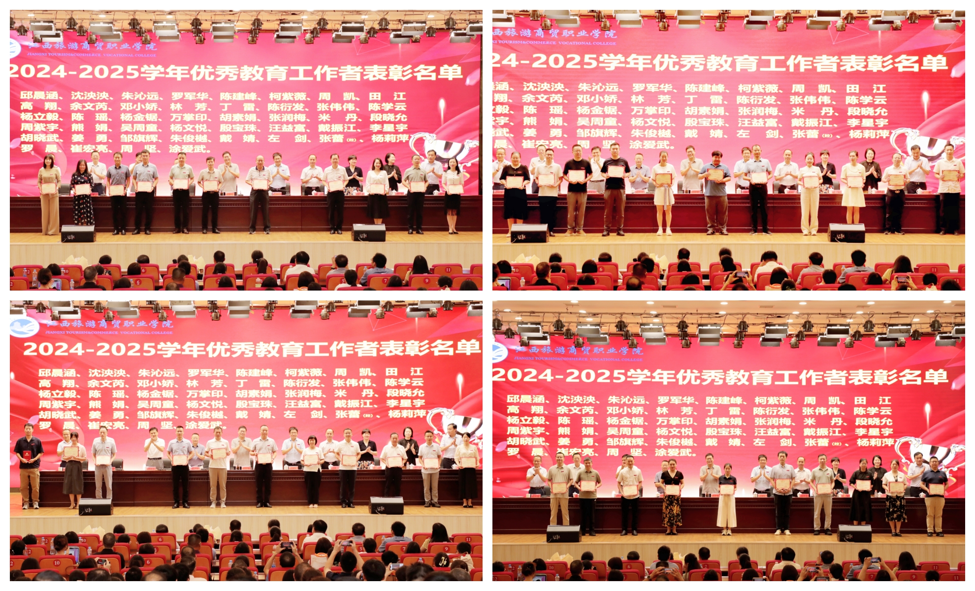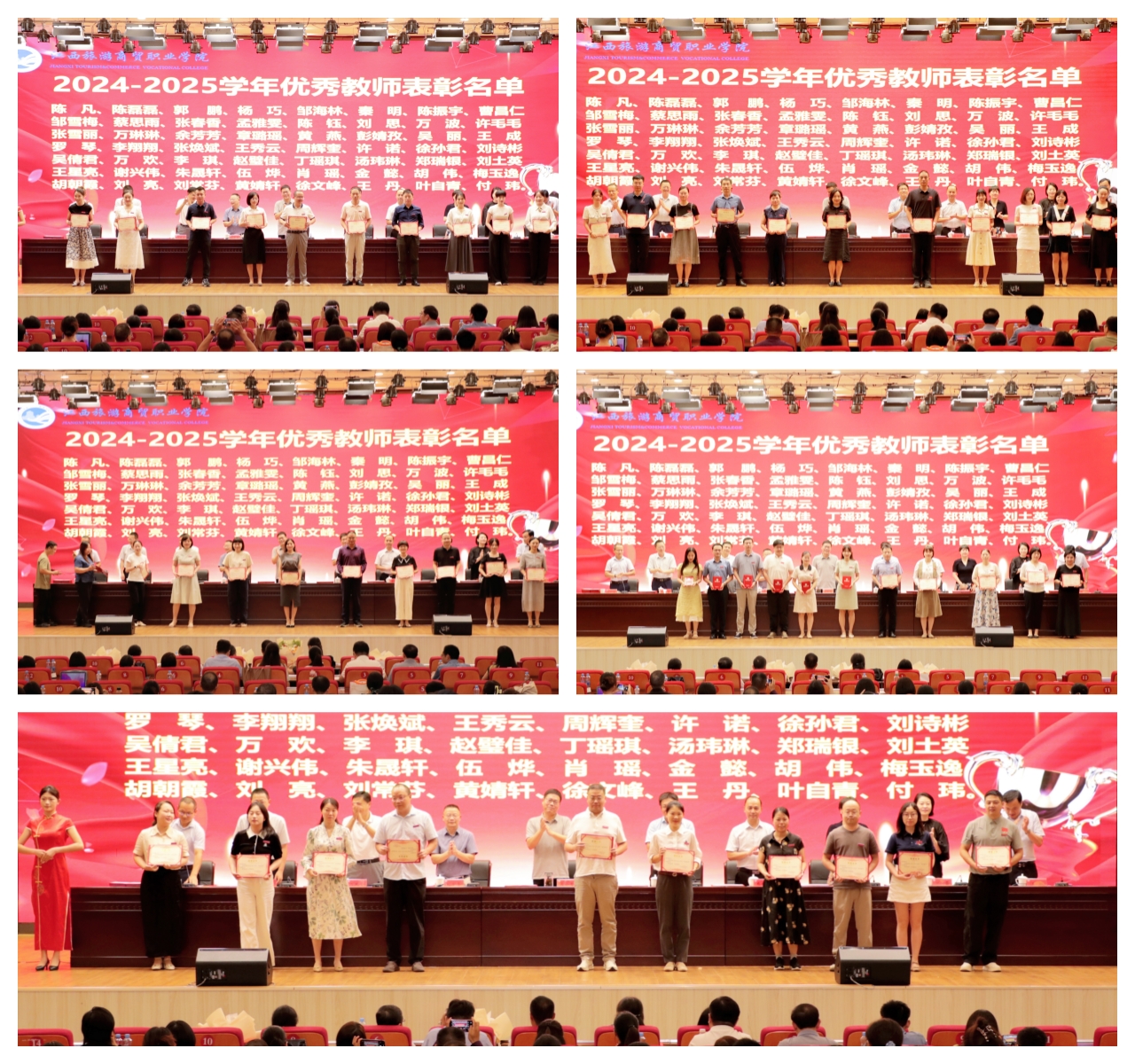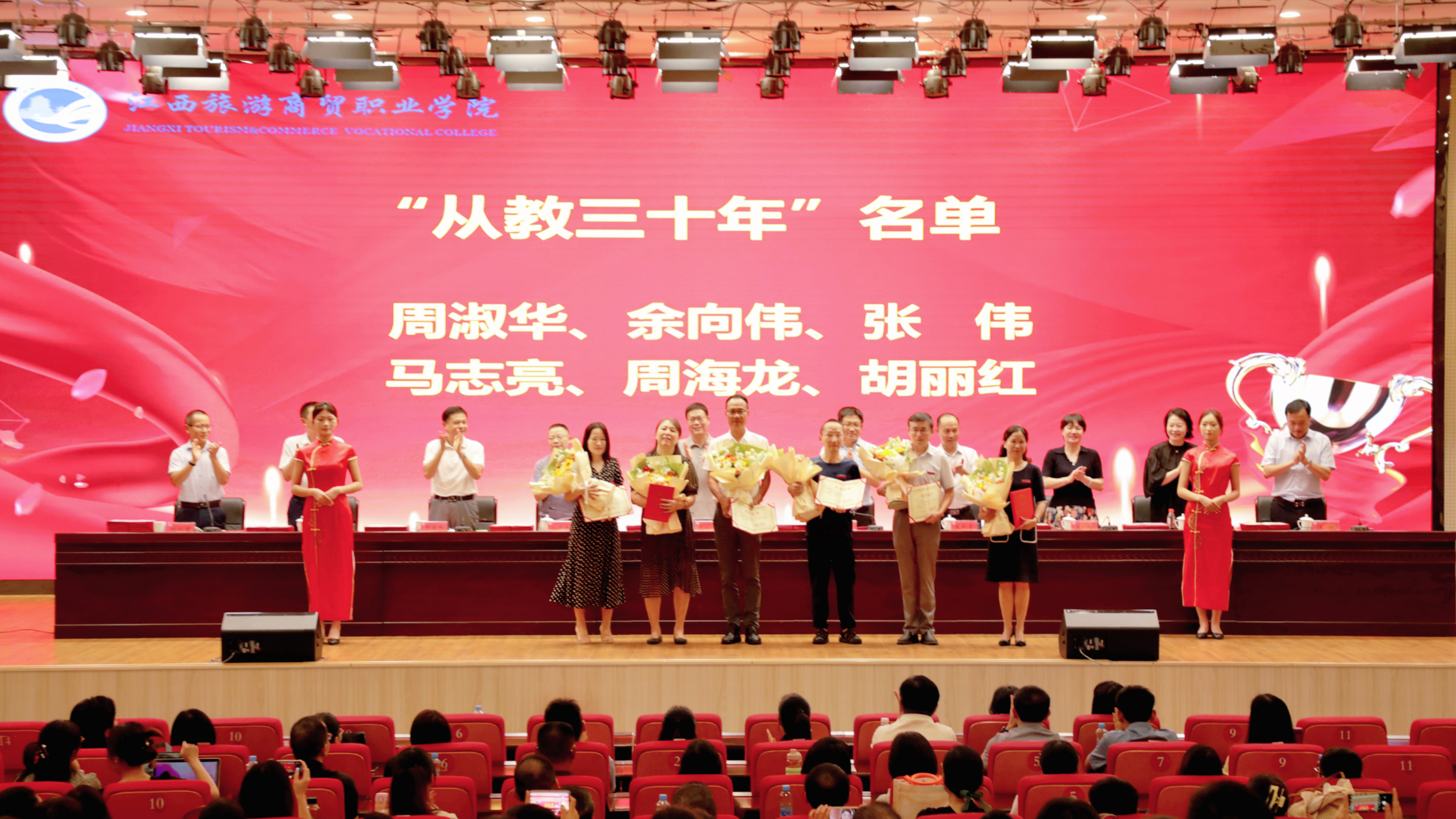 校领导宣读“从教三十年”、全省教育系统先进单位、全省模范教师荣誉颁发对象名单和学校2024-2025学年优秀教师、优秀辅导员、优秀教育工作者表彰决定,为120位教师代表颁发荣誉证书。会上,“从教三十年”教师代表周淑华、优秀教师代表叶自青、优秀辅导员代表朱文漪、优秀教育工作者代表邱晨涵踊跃发言。教师们纷纷表示,将会牢记嘱托、立德修身,严谨治学,以教育家精神为引领,继续践行旅商精神,为奋力谱写中国式现代化江西篇章贡献强劲的旅商力量!