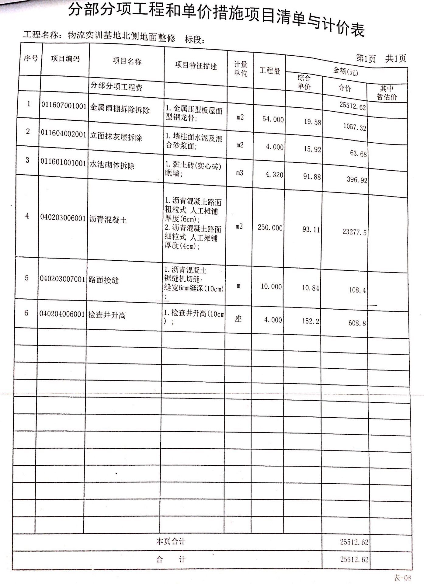 一、采购内容:学校现代物流实训基地北侧通道地面整修项目