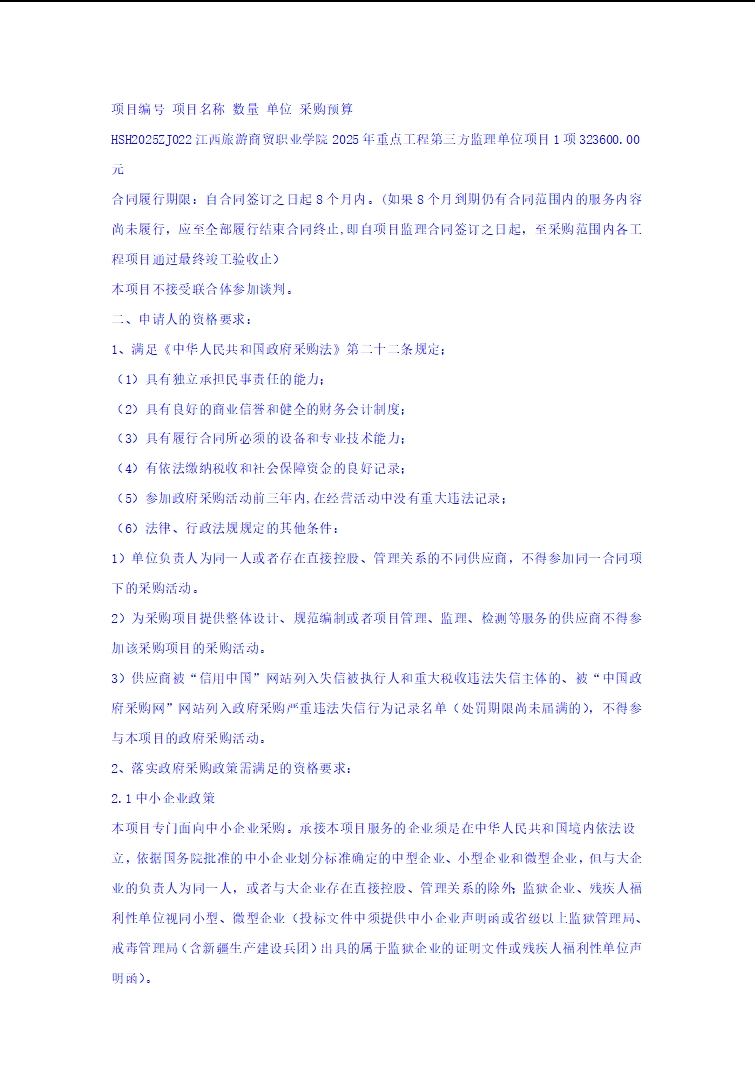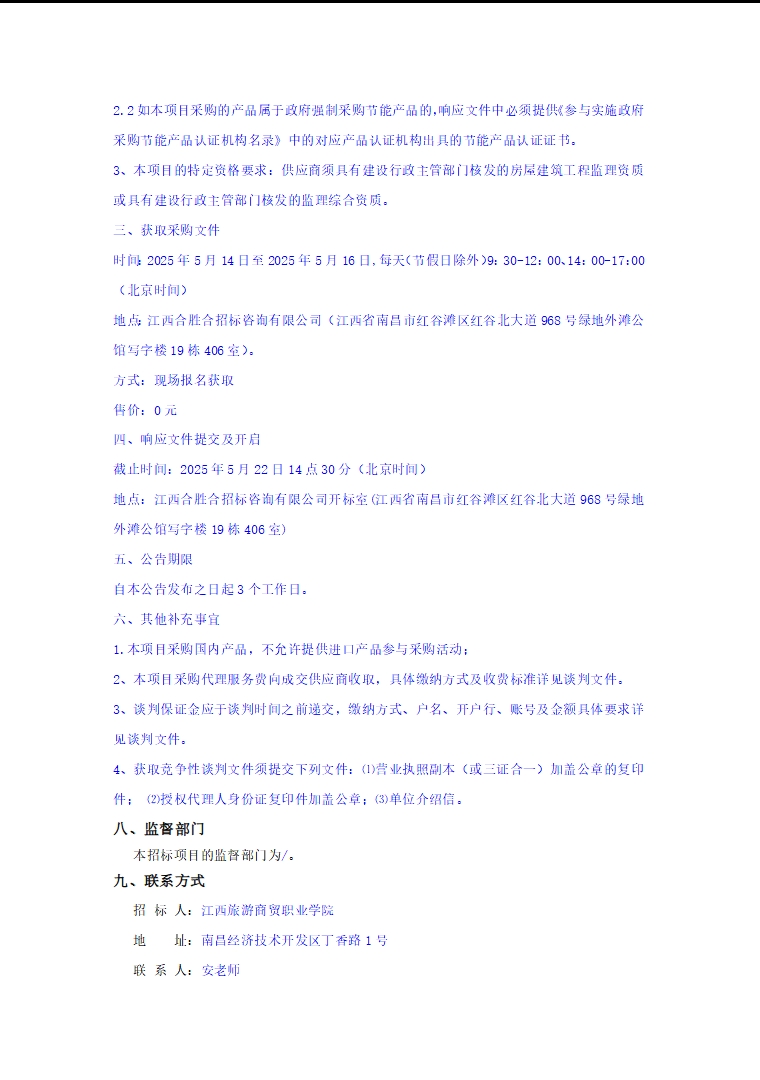 江西合胜合招标咨询有限公司关于江西旅游商贸职业学院 2025 年重点工程第三方监理单位项目(项目编号:HSH2025ZJ022)竞争性谈判公告(招标编号:HSH2025ZJ022)