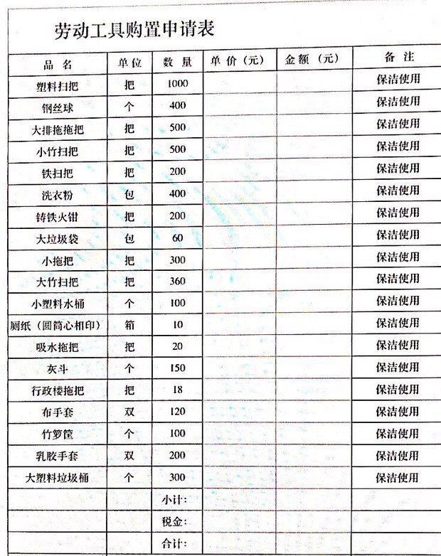 关于购置保洁工具的采购公告