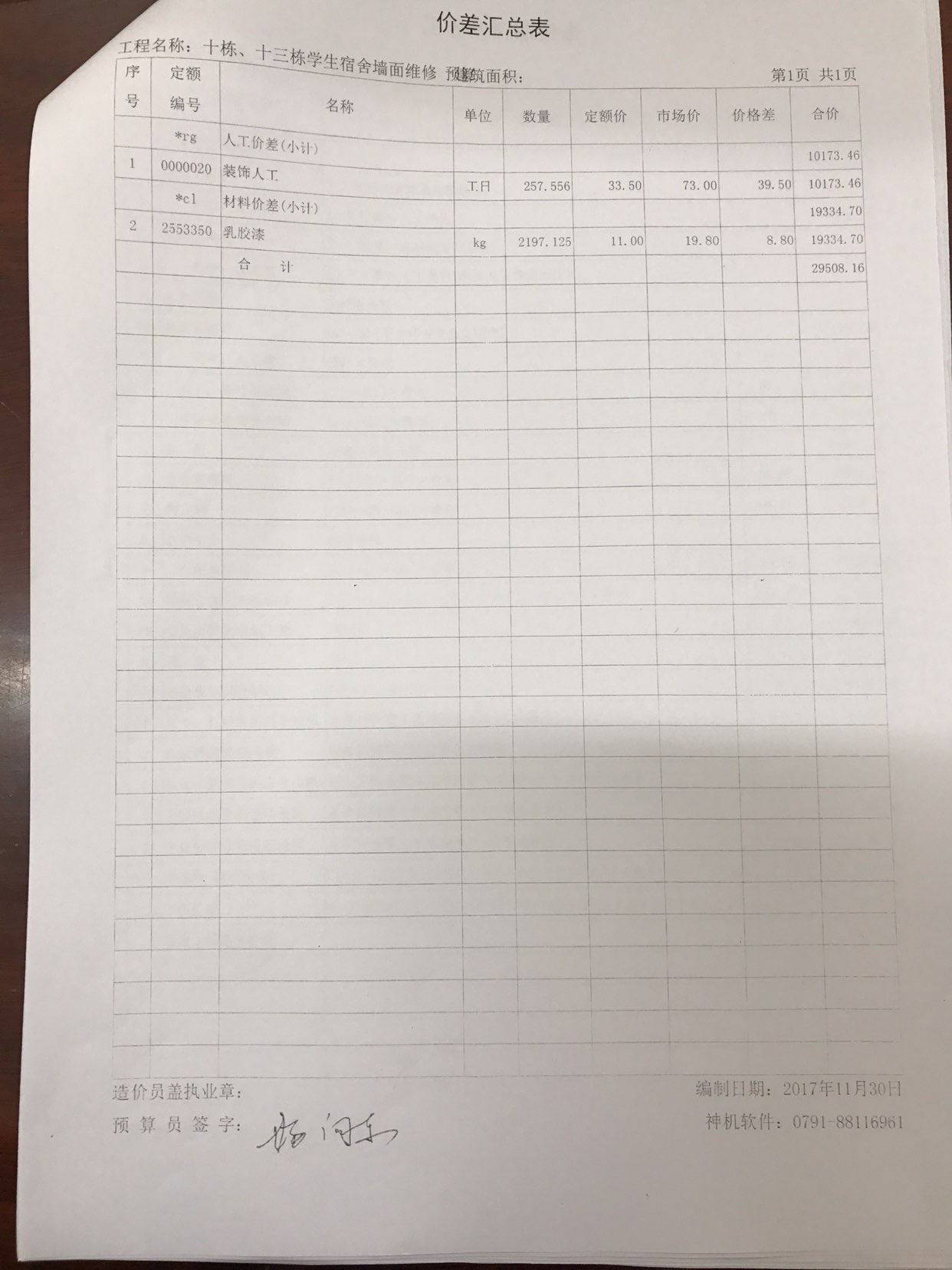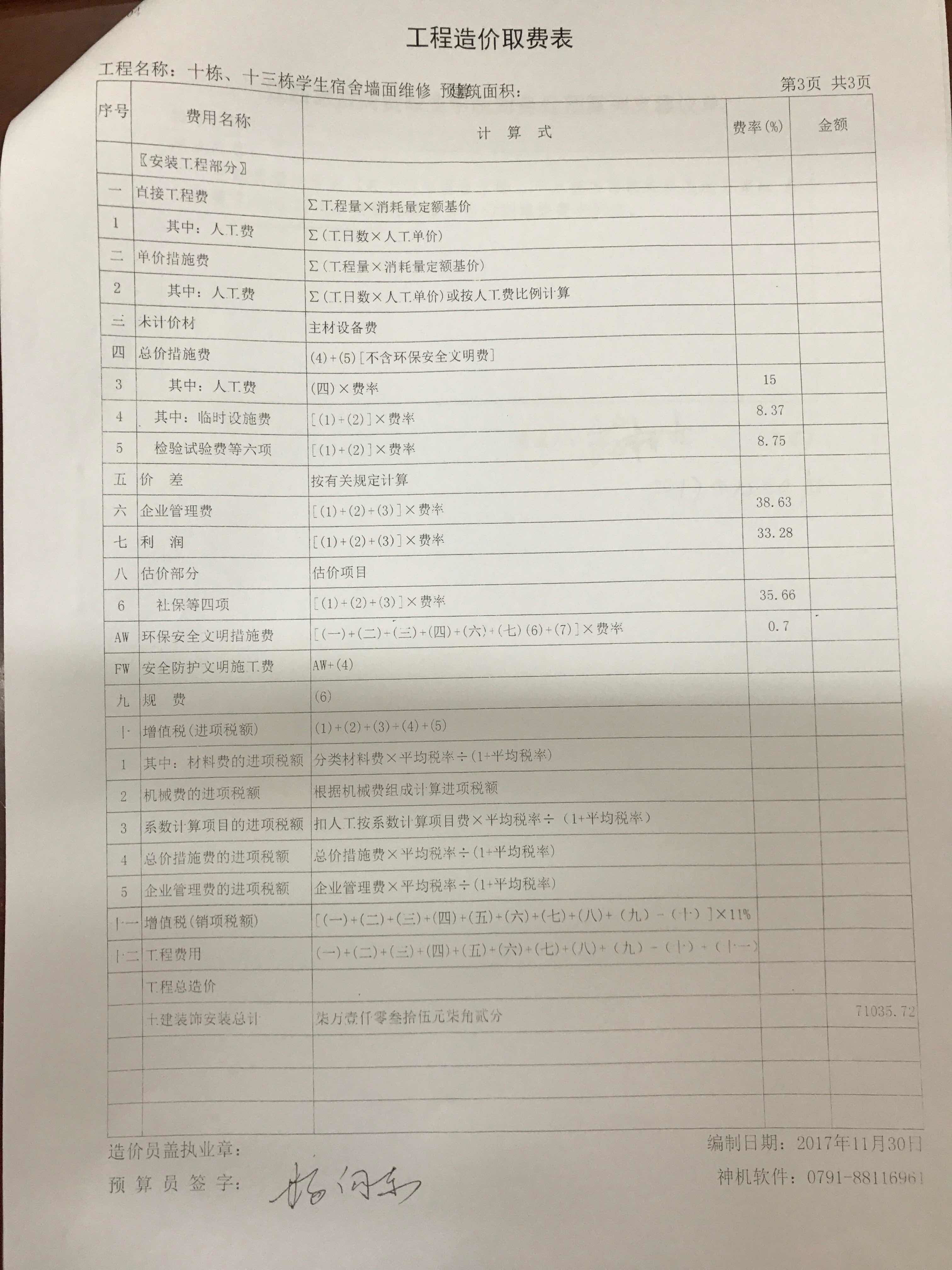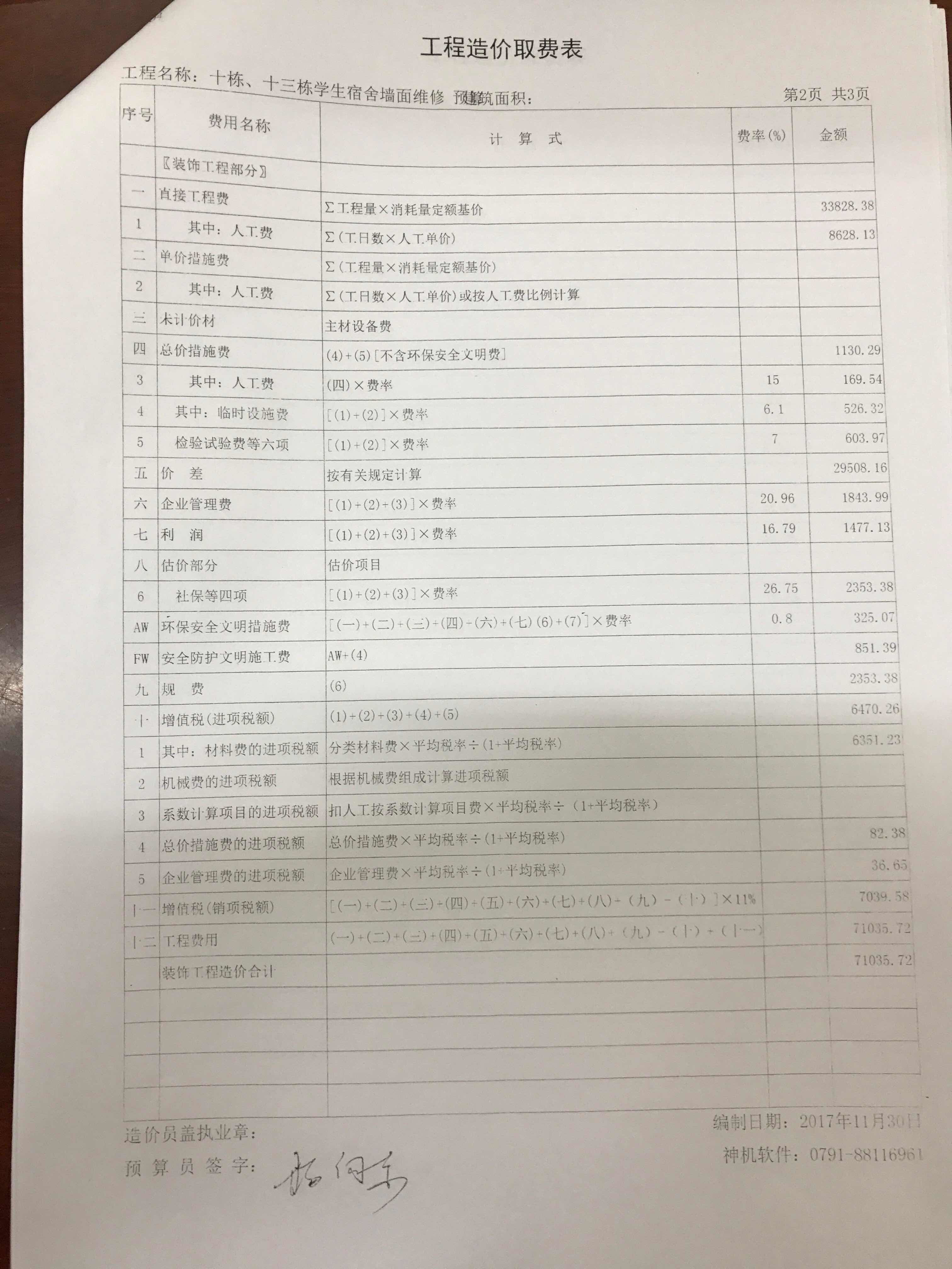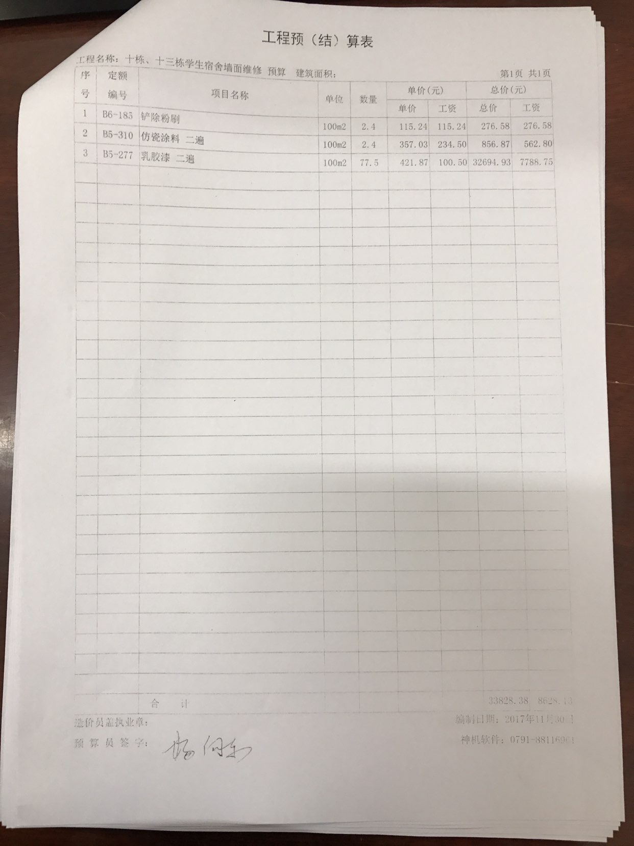 学生宿舍十栋、十三栋墙面维修项目价税合计:
